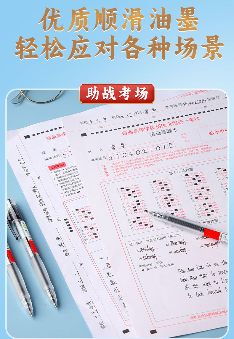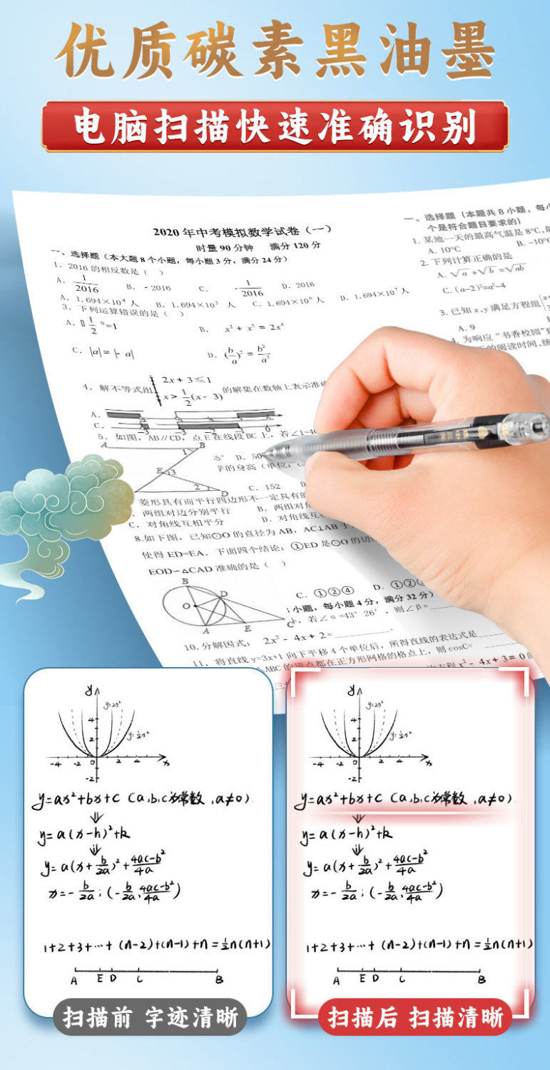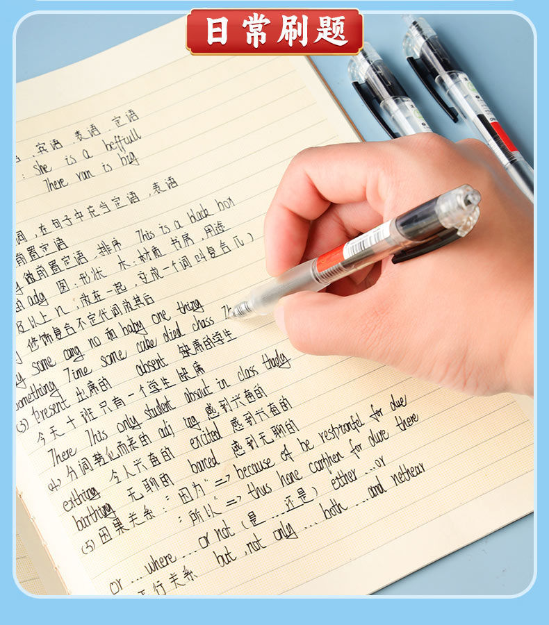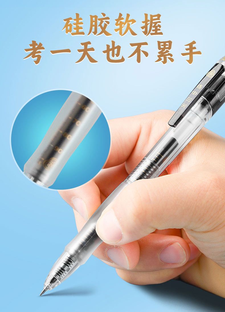 得力按动中性笔 连中三元 学生考试专用st笔头 速干 顺滑 耐用碳素黑笔
