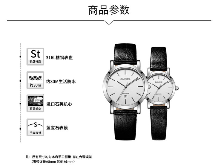 RARONE雷诺表高光系列石英对表83806