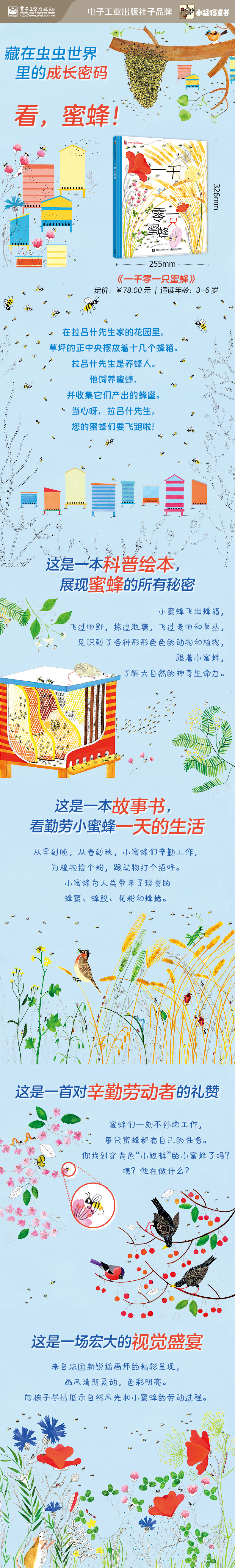 拉吕什先生家的花园里,草坪的正中央摆放着十几个蜂箱。拉吕什先生是养蜂人。他饲养蜜蜂,并收集它们产出的蜂蜜。让我们一起和1001只蜜蜂去冒险吧!来看看蜂巢里的蜜蜂,见见它们的女王,了解它们是如何收集花粉的。然后和它们一起参观它们*喜欢的花,在它们的蜂巢里工作,冒险寻找适合它们家的好去处……哎呦,那"一大串”蜜蜂都去哪儿了?拉吕什先生已经把它们放进新的蜂箱里啦!书中充满了关于大自然的迷人事实。生动、吸引人的插图,是对虫子和动物王国好奇的孩子们的*备品。