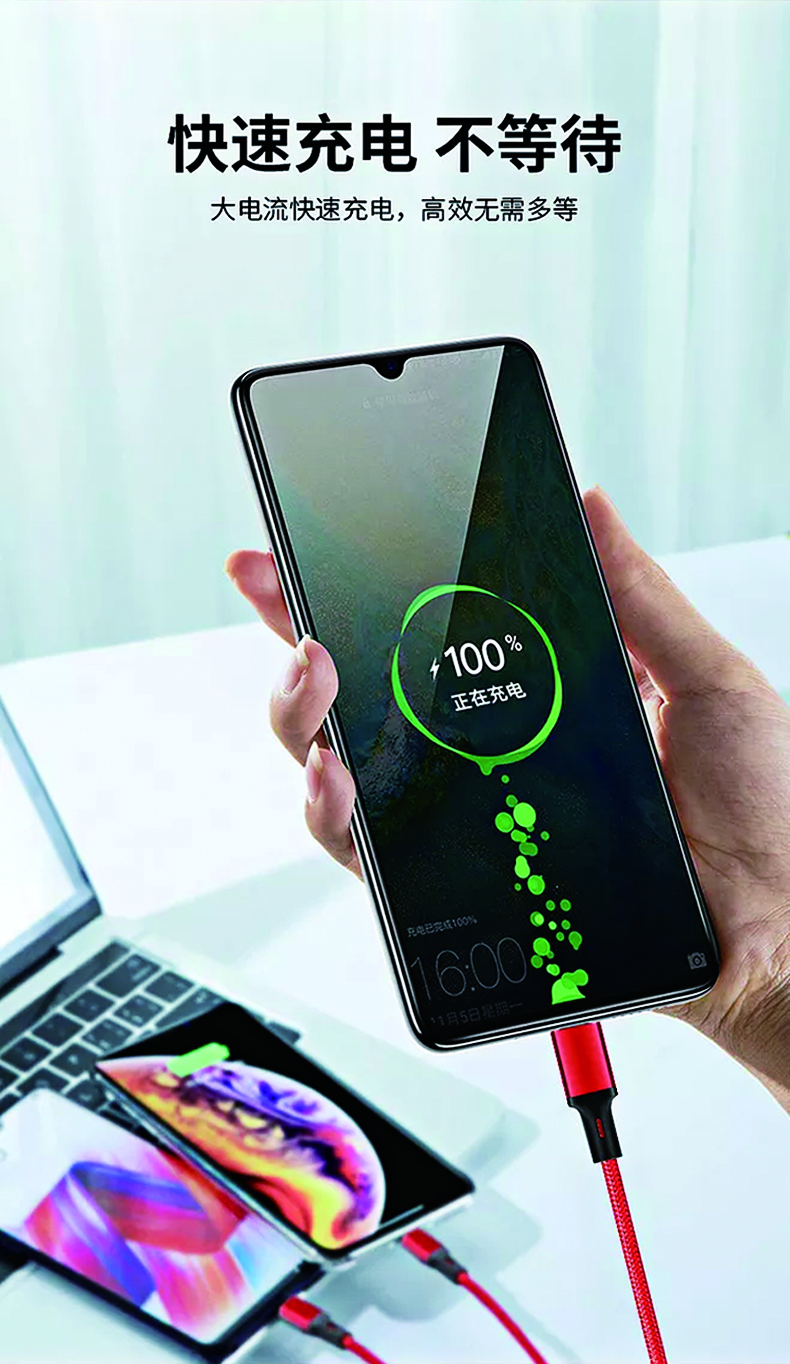 本产品数据线最大支持电流:2.1A,适用于普通充电需求,非快充。如需快充体验,建议选择其他支持3A/5A的快充线。
