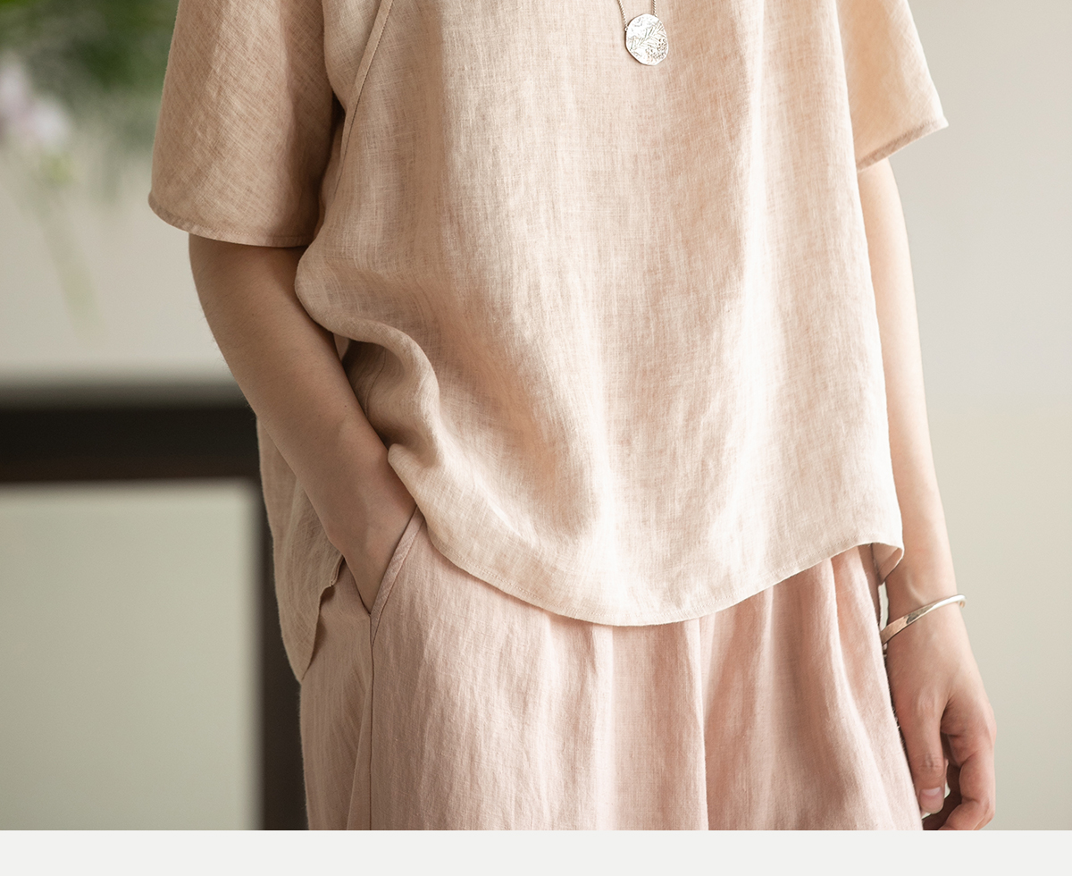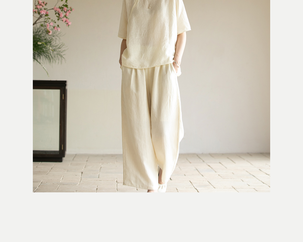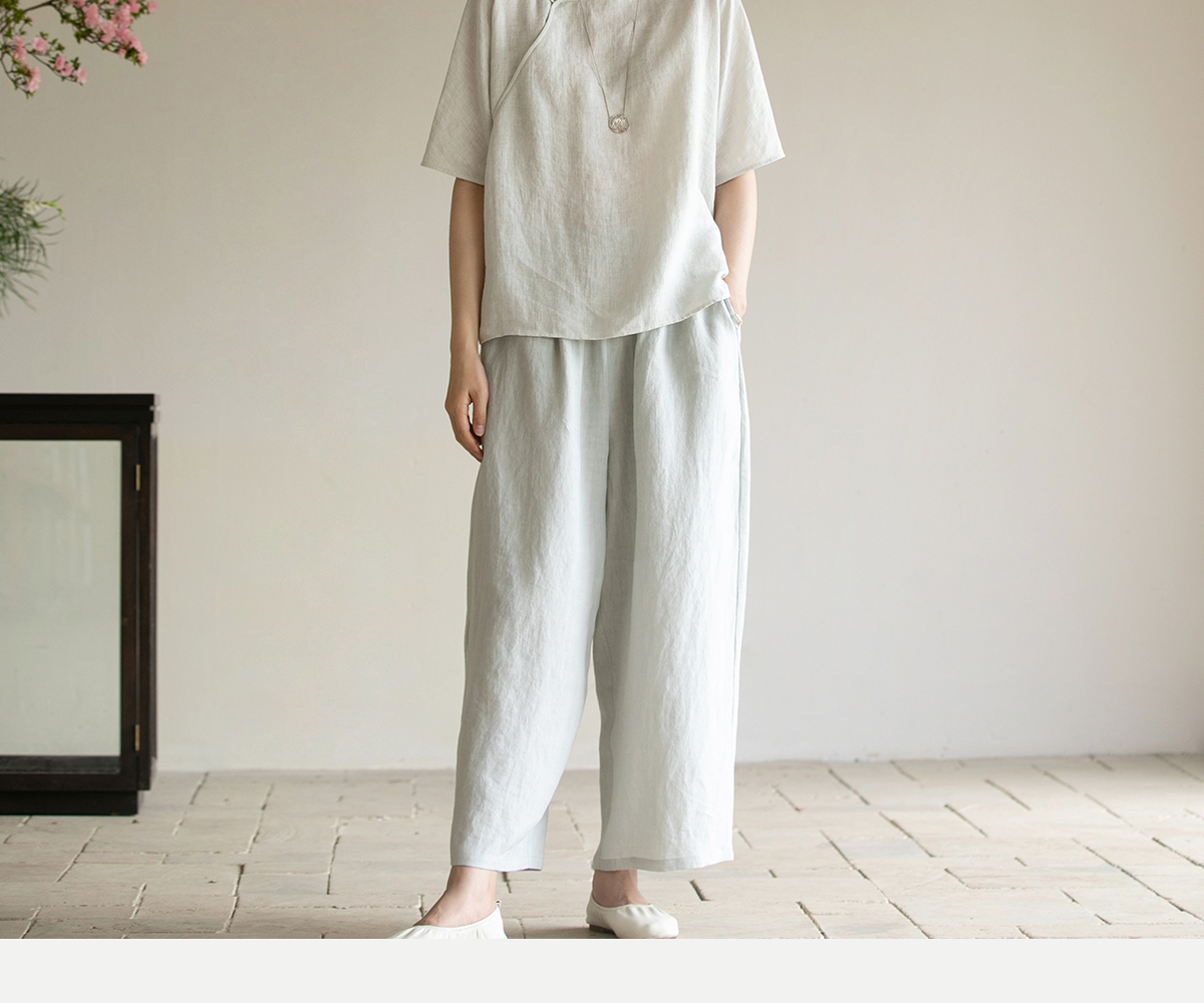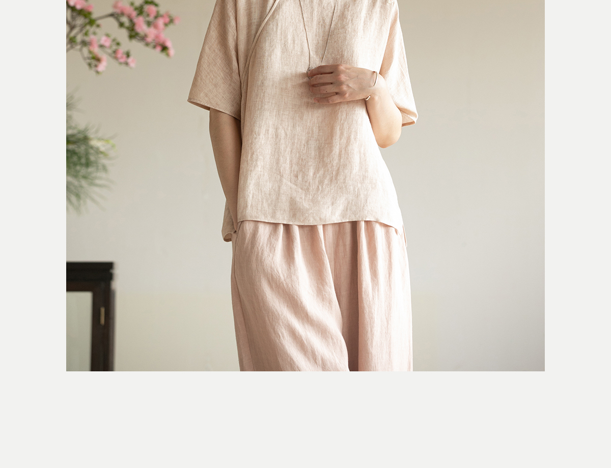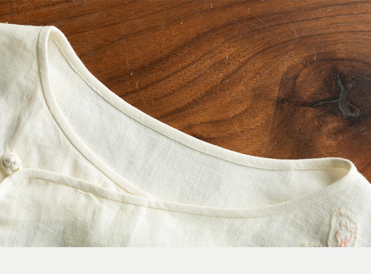 牧衣游原创 手工刺绣汉麻套头衫轻薄清凉禅意复古短袖上衣 撷芳归
