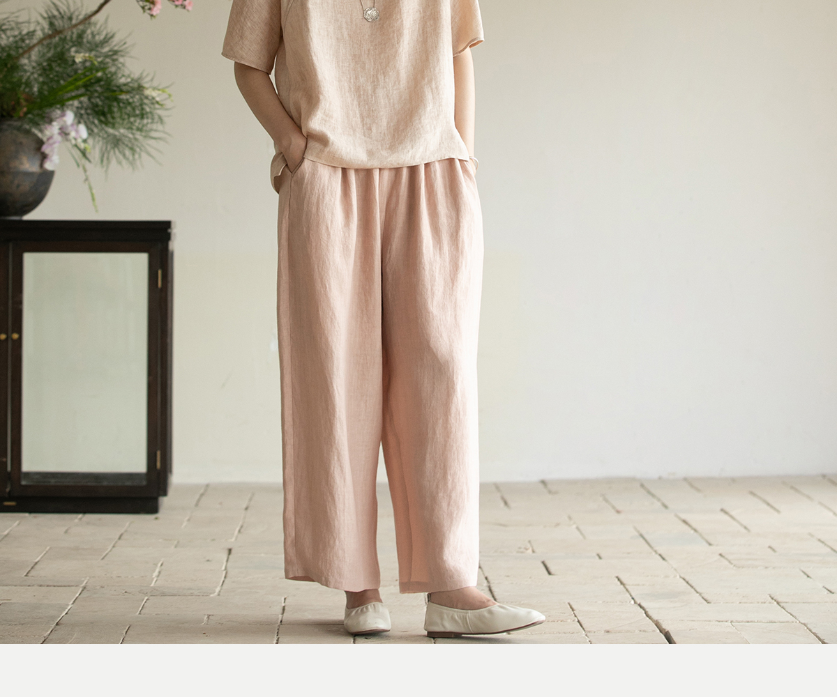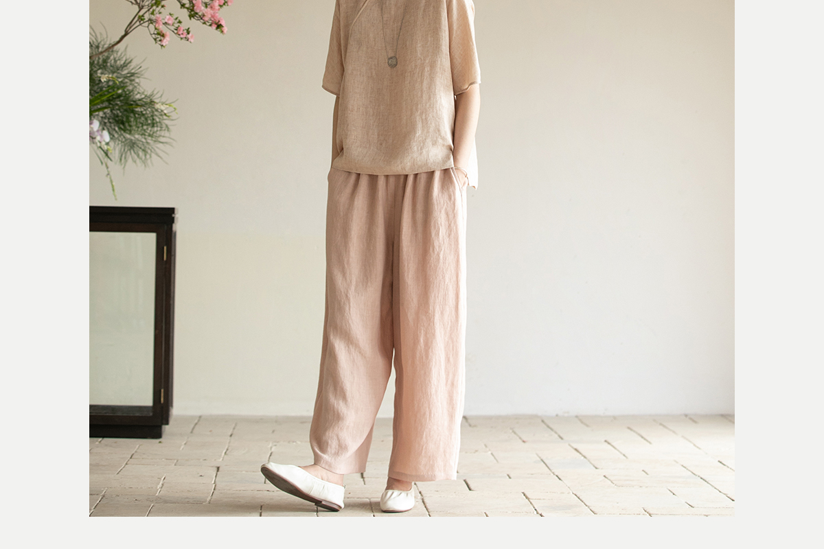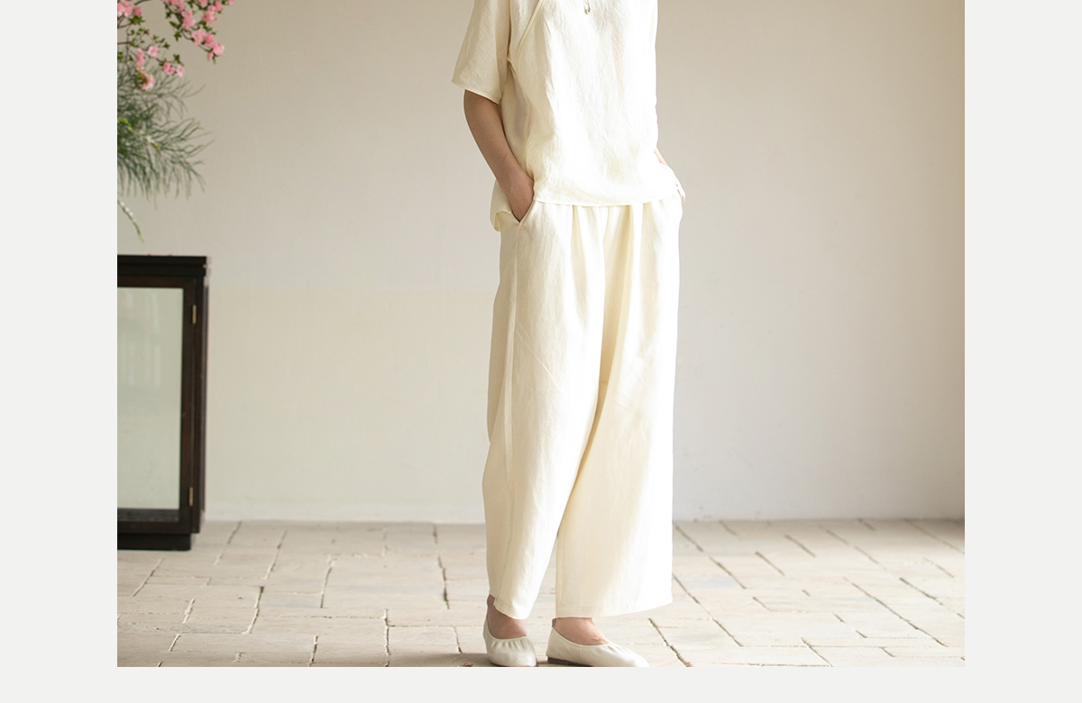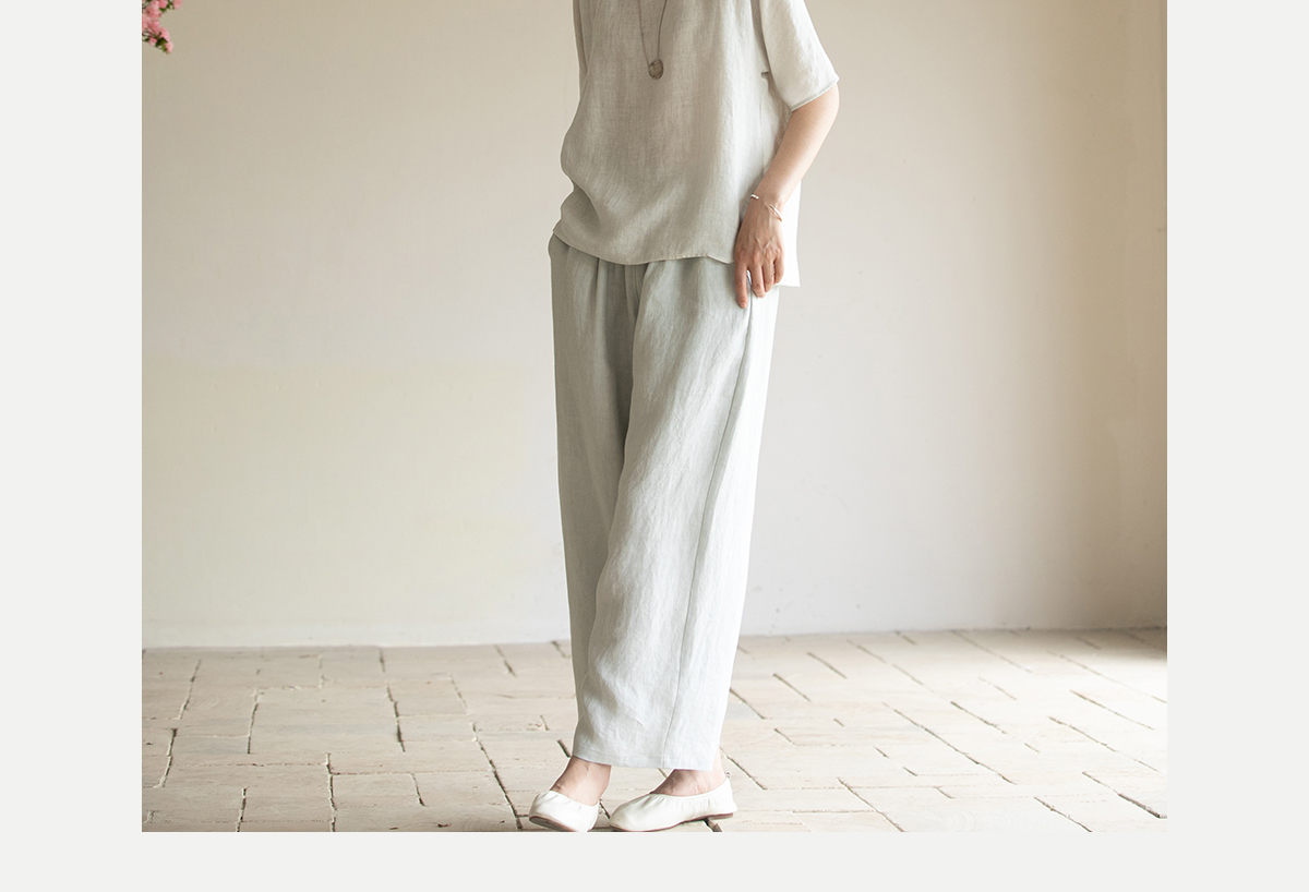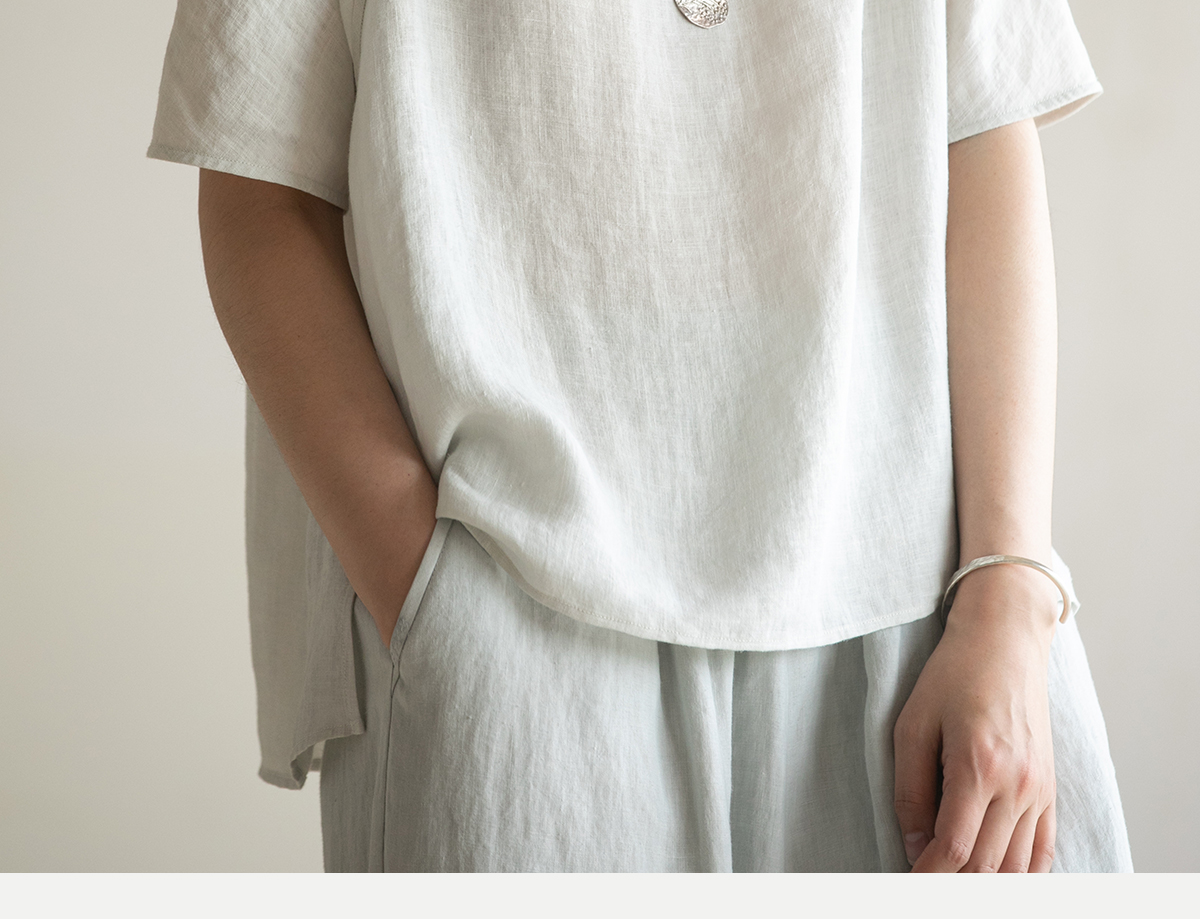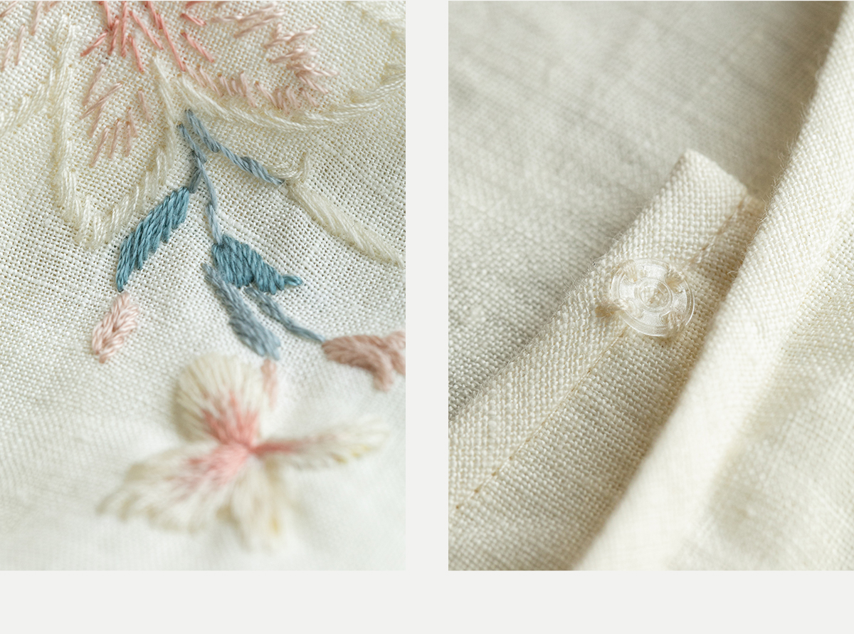 牧衣游原创 手工刺绣汉麻套头衫轻薄清凉禅意复古短袖上衣 撷芳归