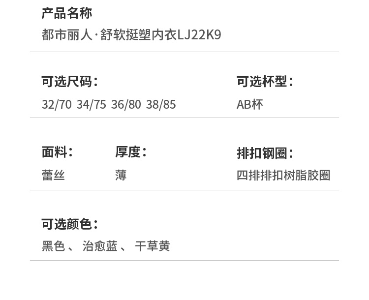 都市丽人舒软挺塑轻塑AB杯调整型文胸蕾丝薄3/4杯塑身文胸四排扣树脂胶圈LJ22K9