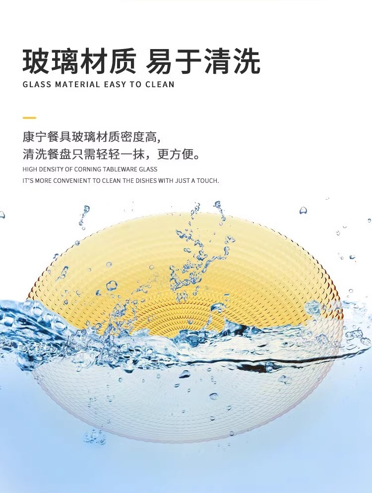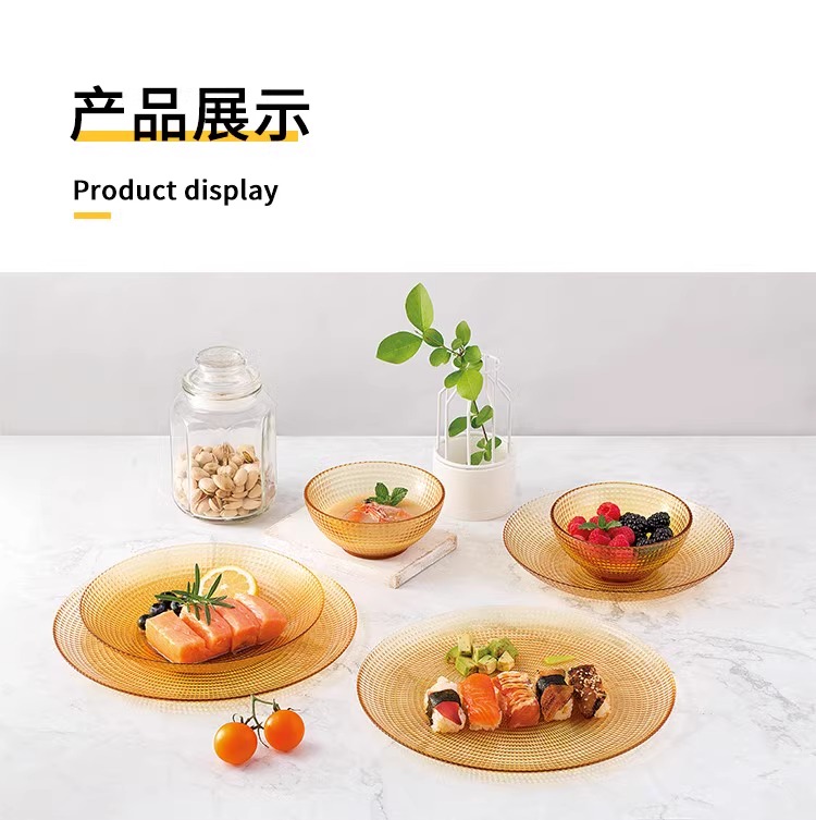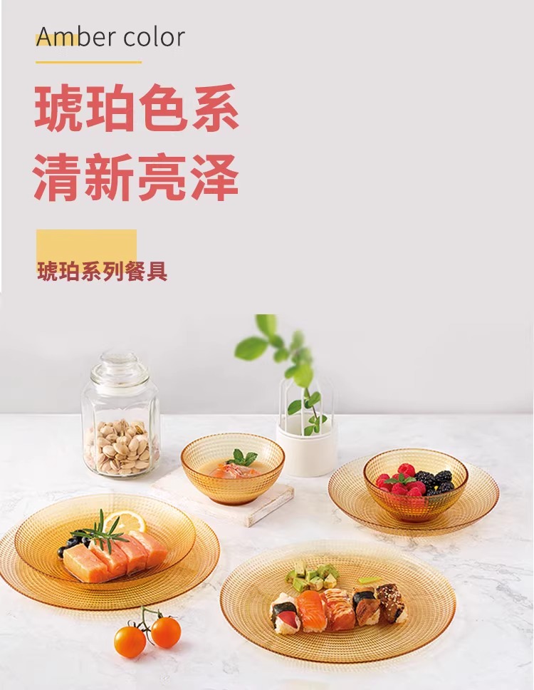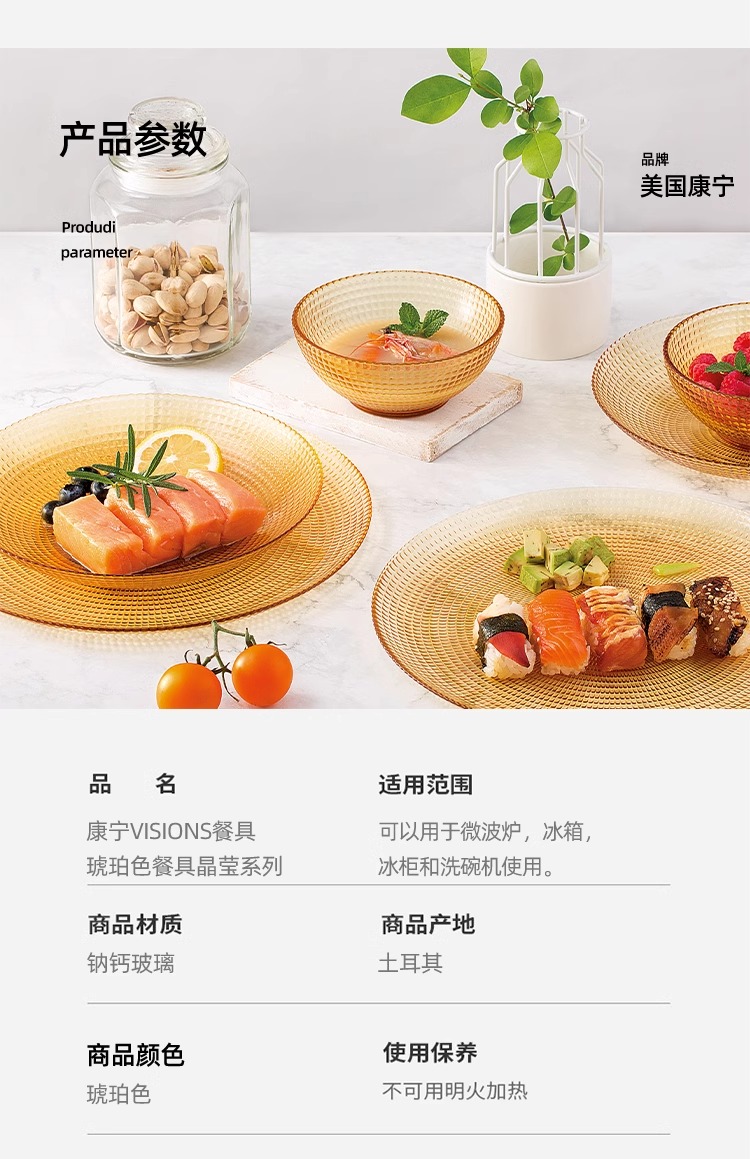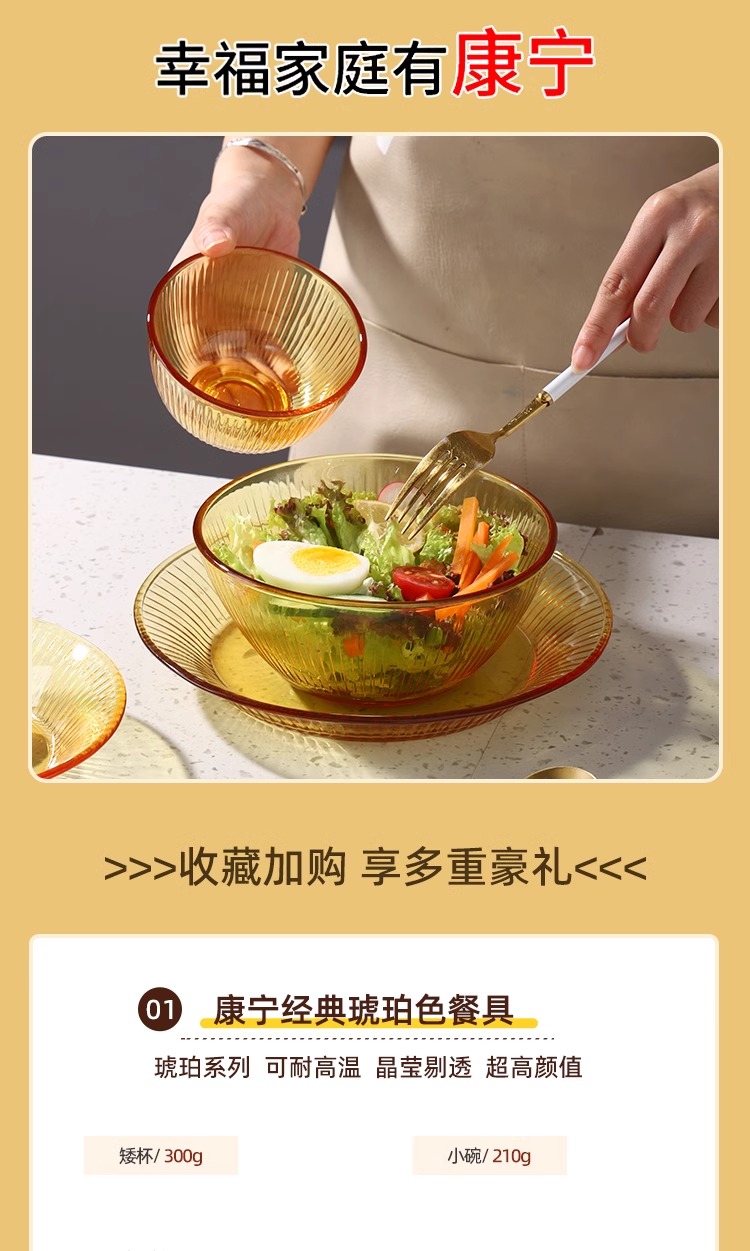 康宁琥珀玻璃餐具套装饭碗面碗汤碗玻璃碗耐高温沙拉碗碟套装家用康宁晶致系列餐具4件组(4浅盘)(4饭碗)