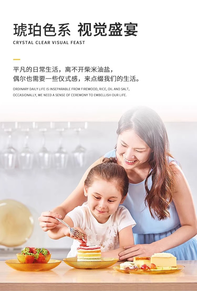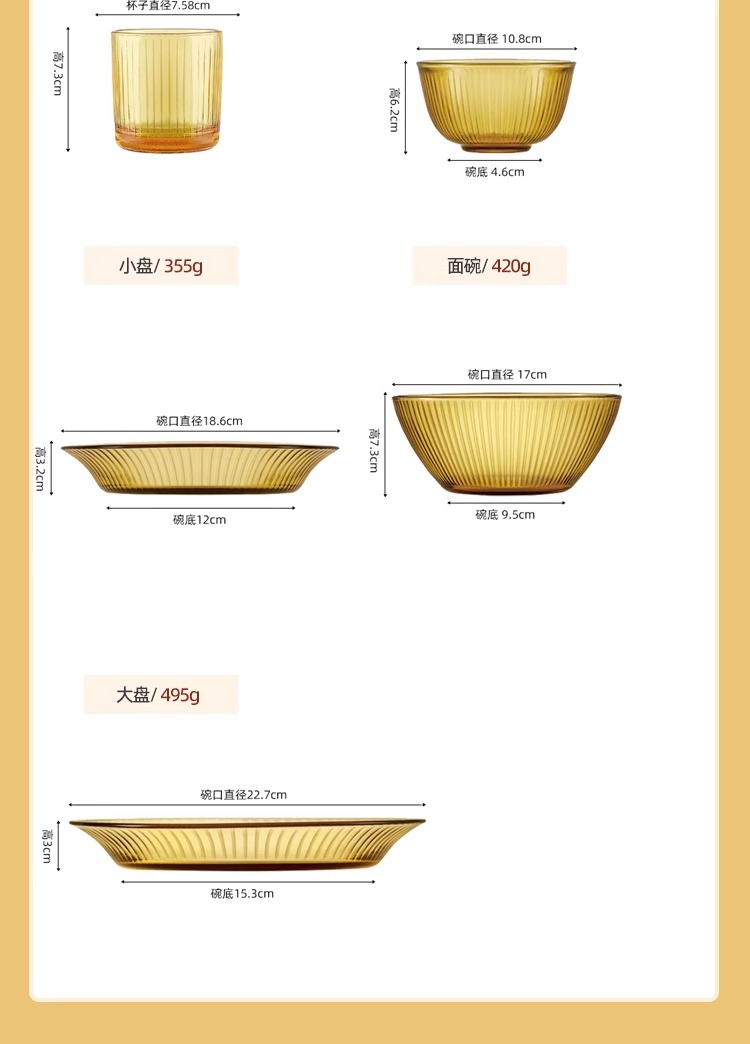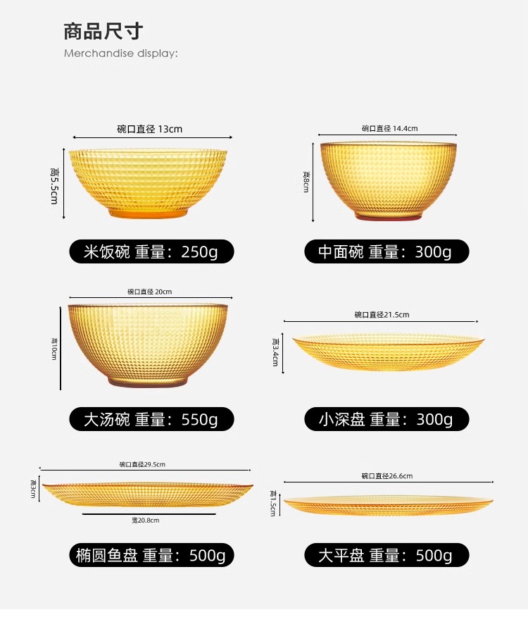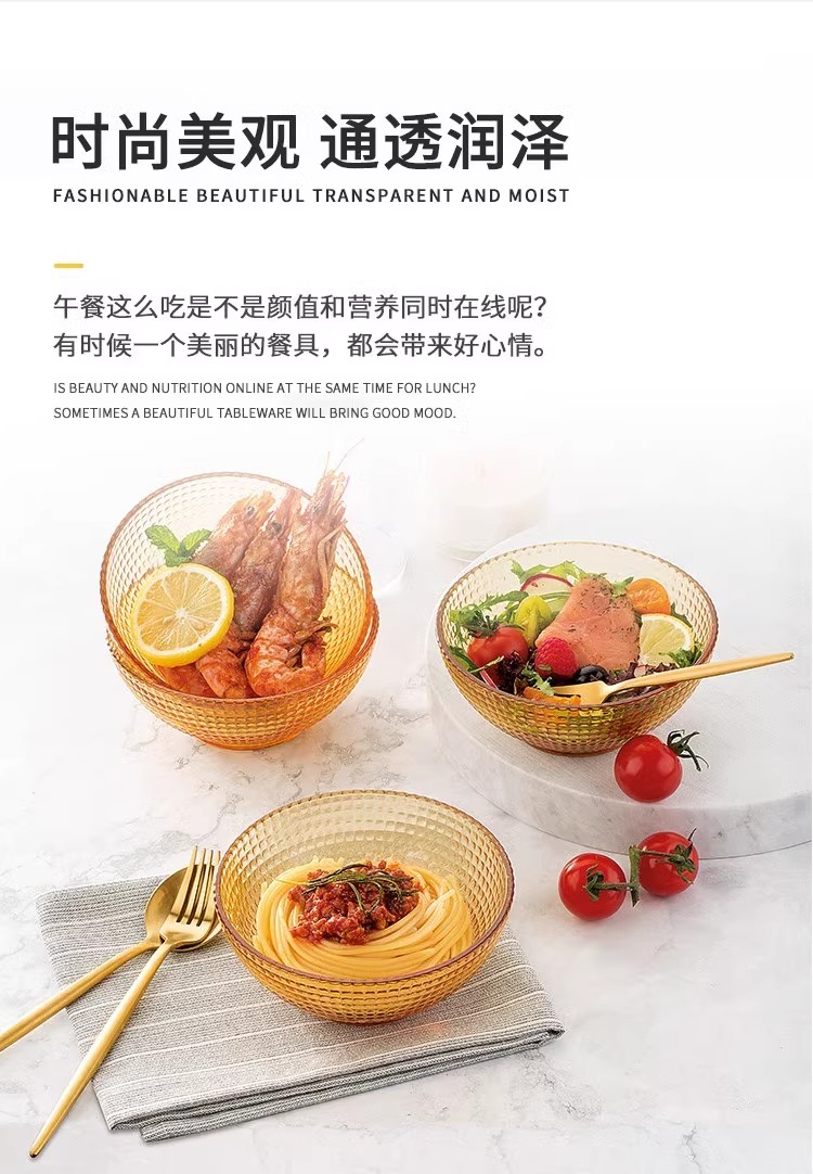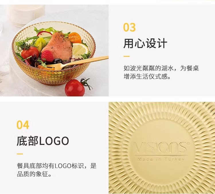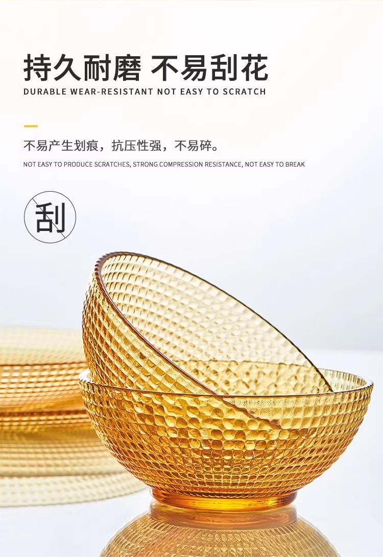 康宁琥珀玻璃餐具套装饭碗面碗汤碗玻璃碗耐高温沙拉碗碟套装家用康宁晶致系列餐具4件组(4浅盘)(4饭碗)