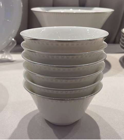凡瑞斯骨瓷 纯白系列轻奢简约中式散件面碗饭碗平盘菜盘家用碗碟组合自由搭配
