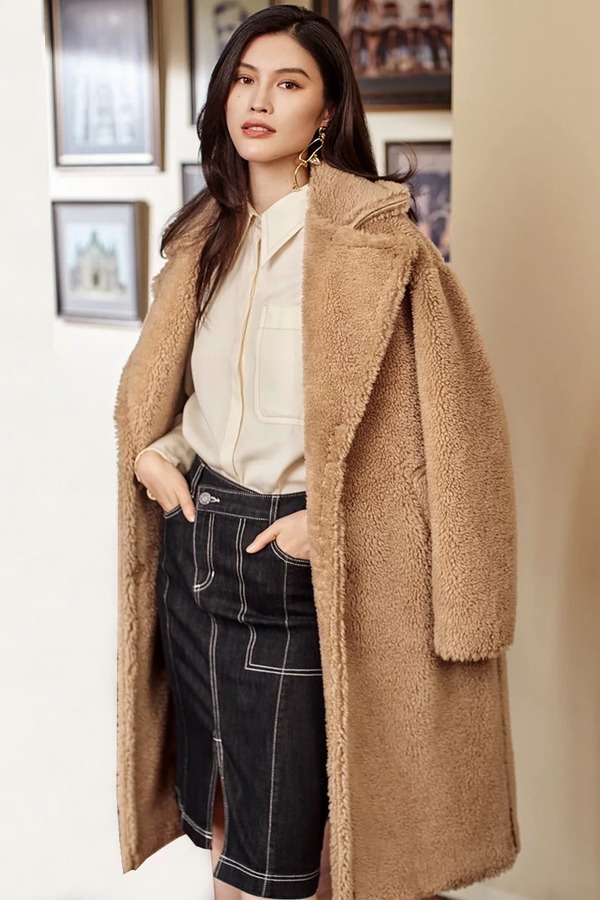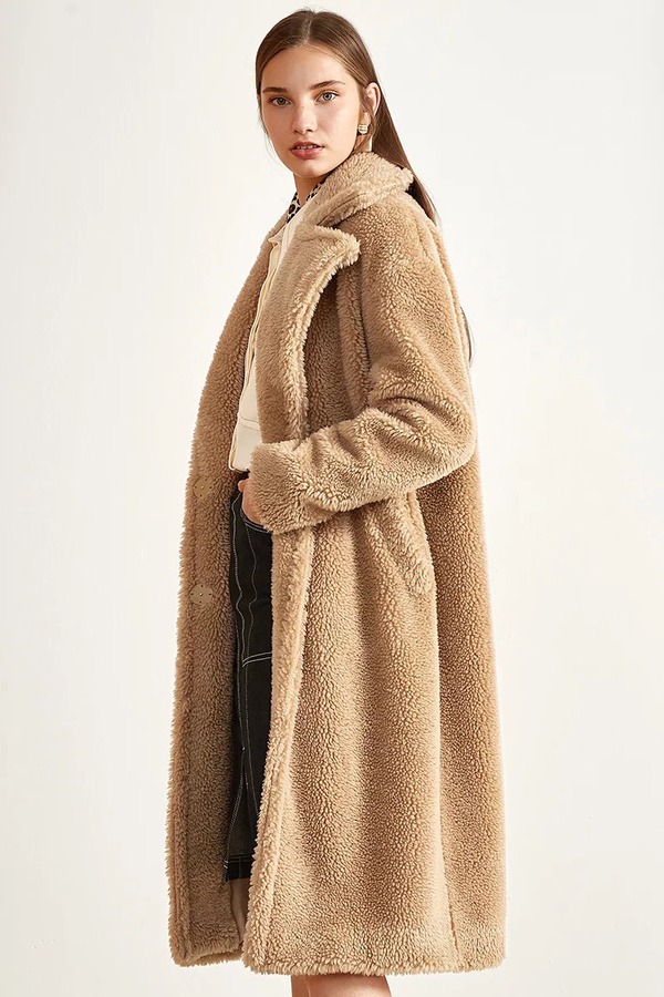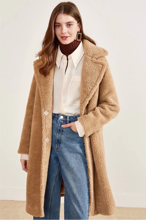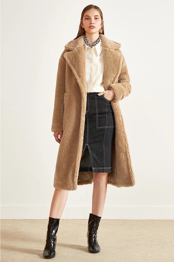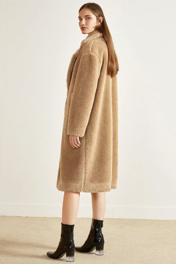Eifini伊芙丽 卡其色韩版颗粒绒毛呢大衣 10163