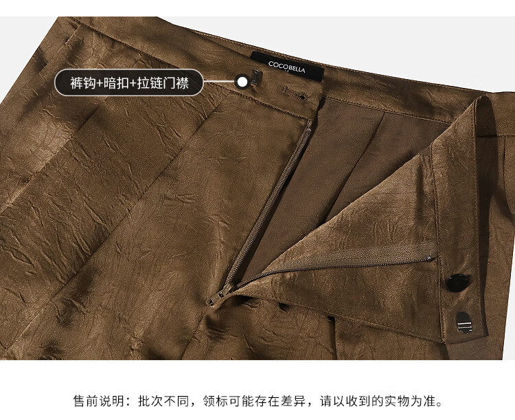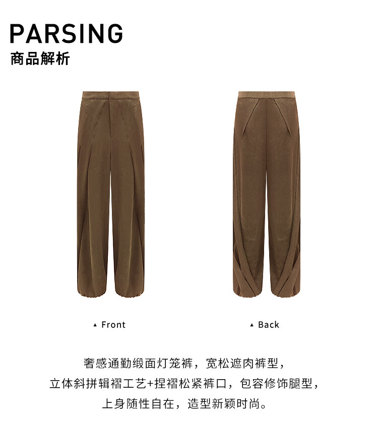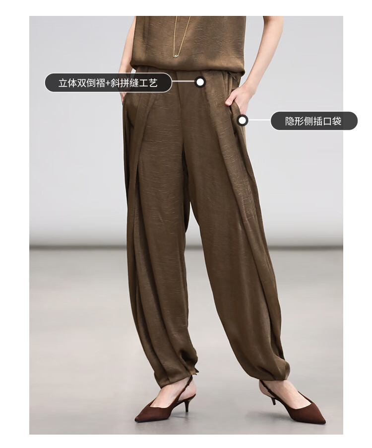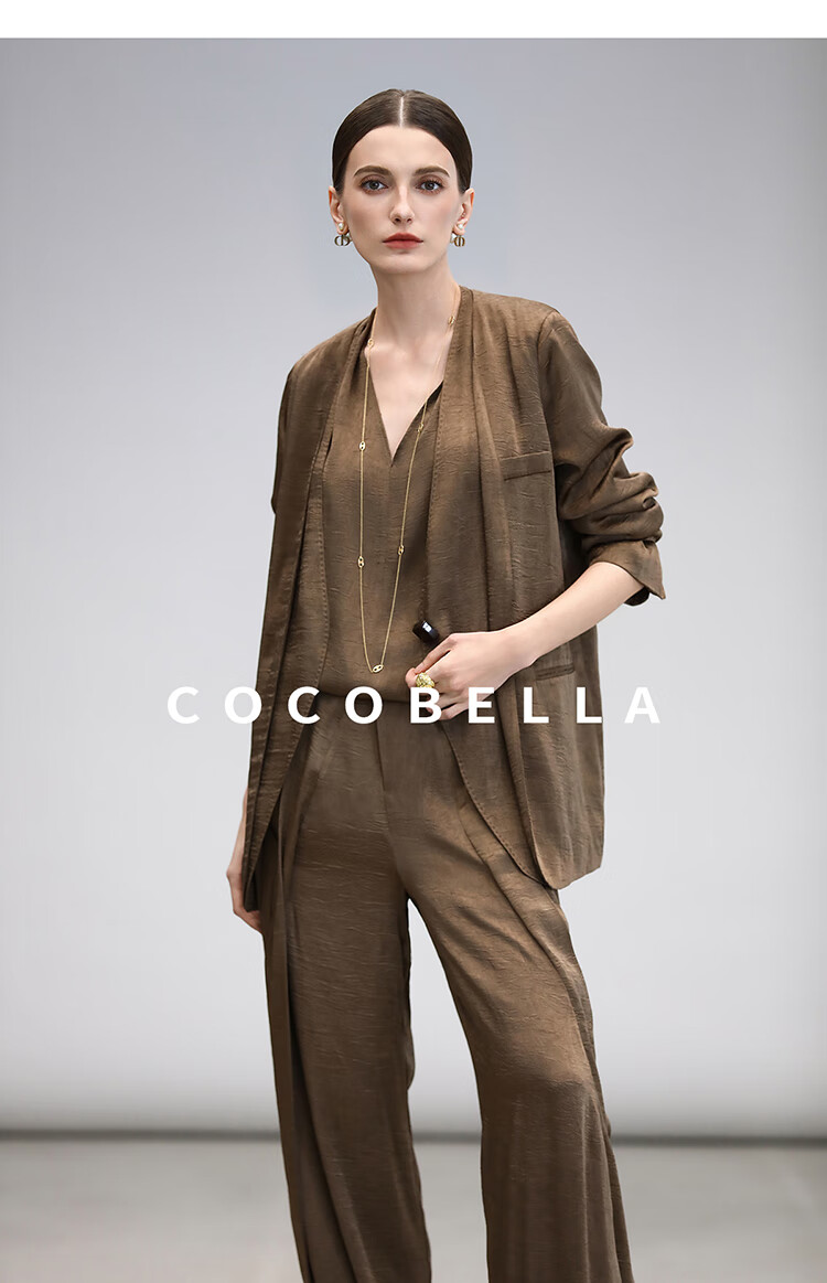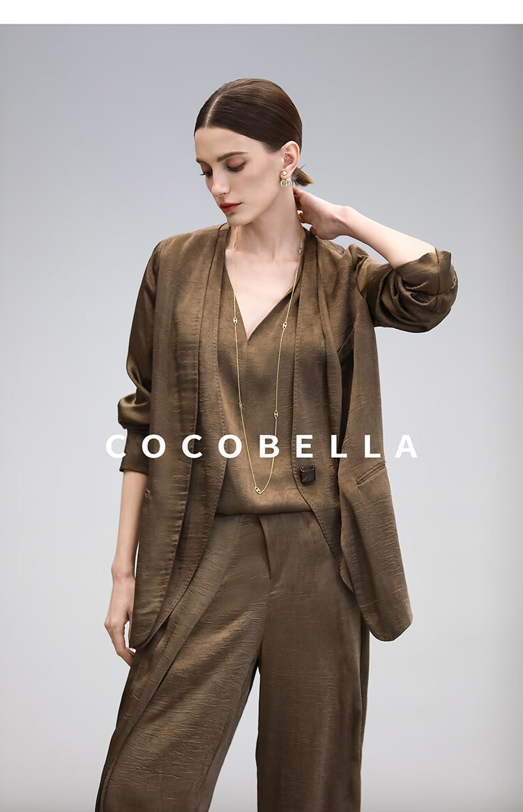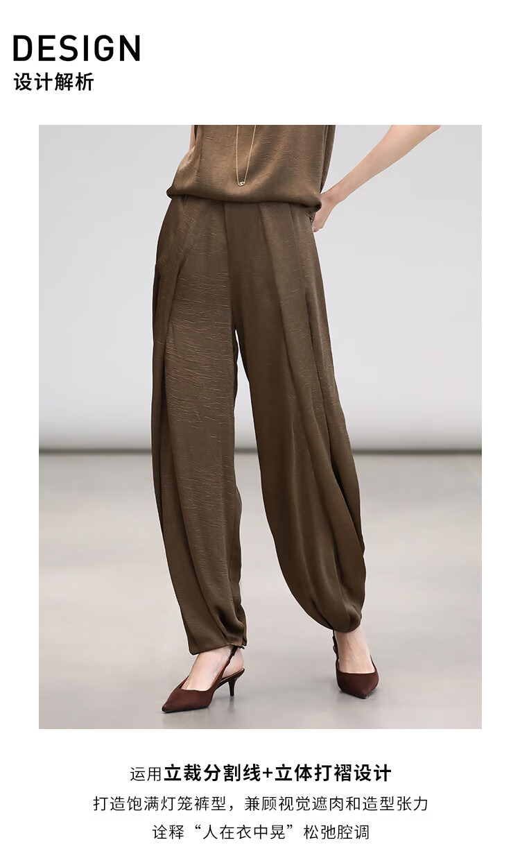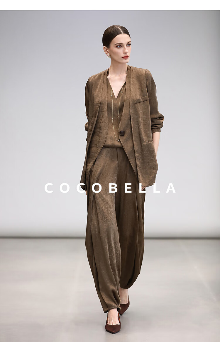 COCOBELLA奢感通勤商务肌理缎面休闲裤春夏高腰打褶灯笼裤PA3011