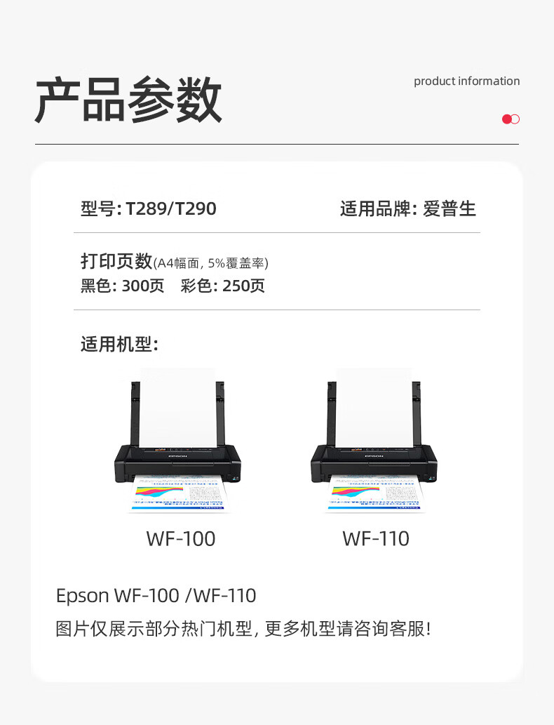 绘威 T289/T290墨盒 适用爱普生WF-100 WF-110 epson便携式打印机墨盒 墨水【黑彩套装】