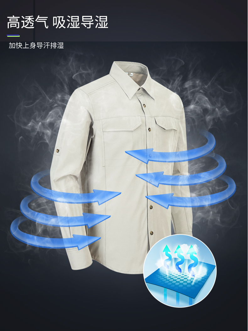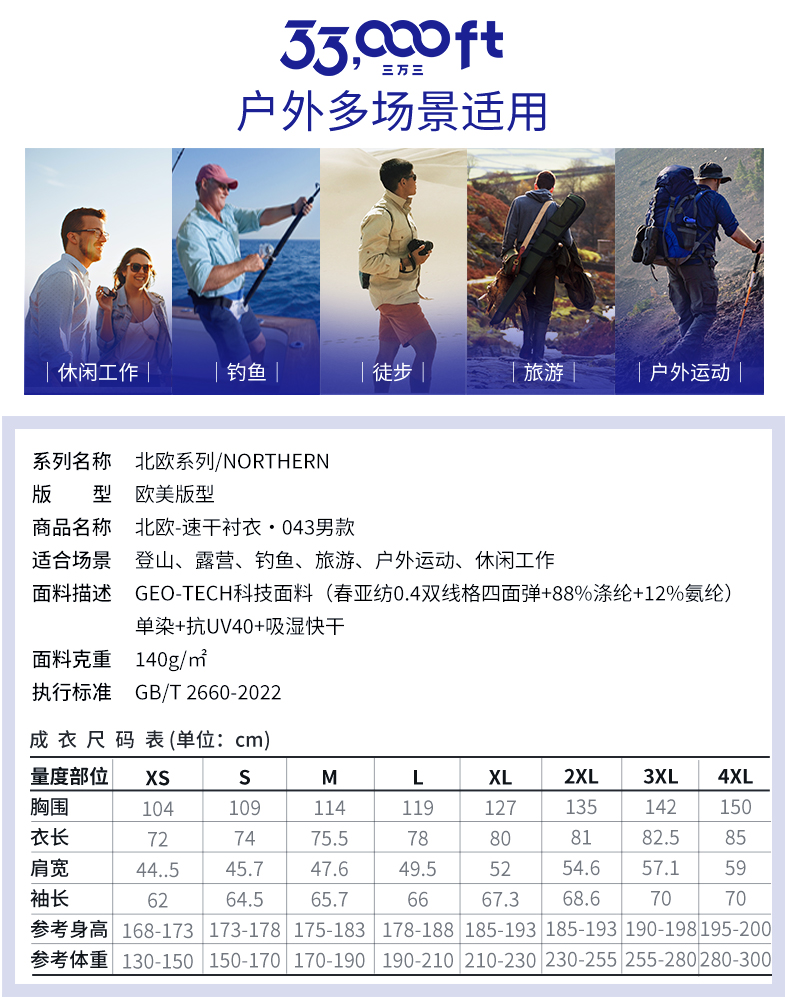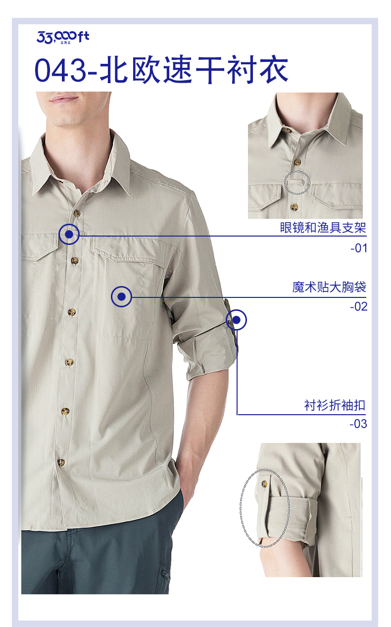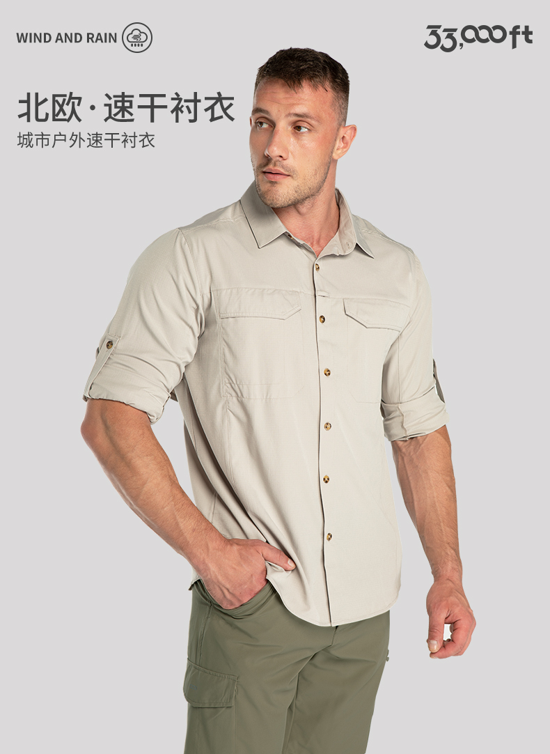 33000ft北欧户外男速干衬衣速干透气防晒长袖速干衣户外衬衫防泼