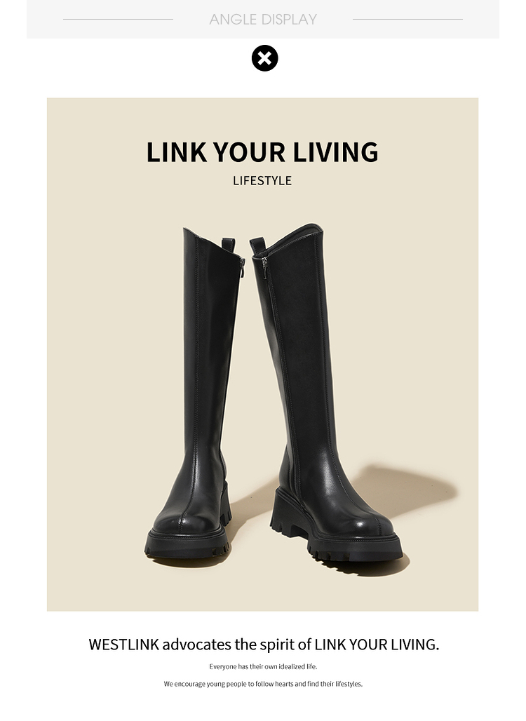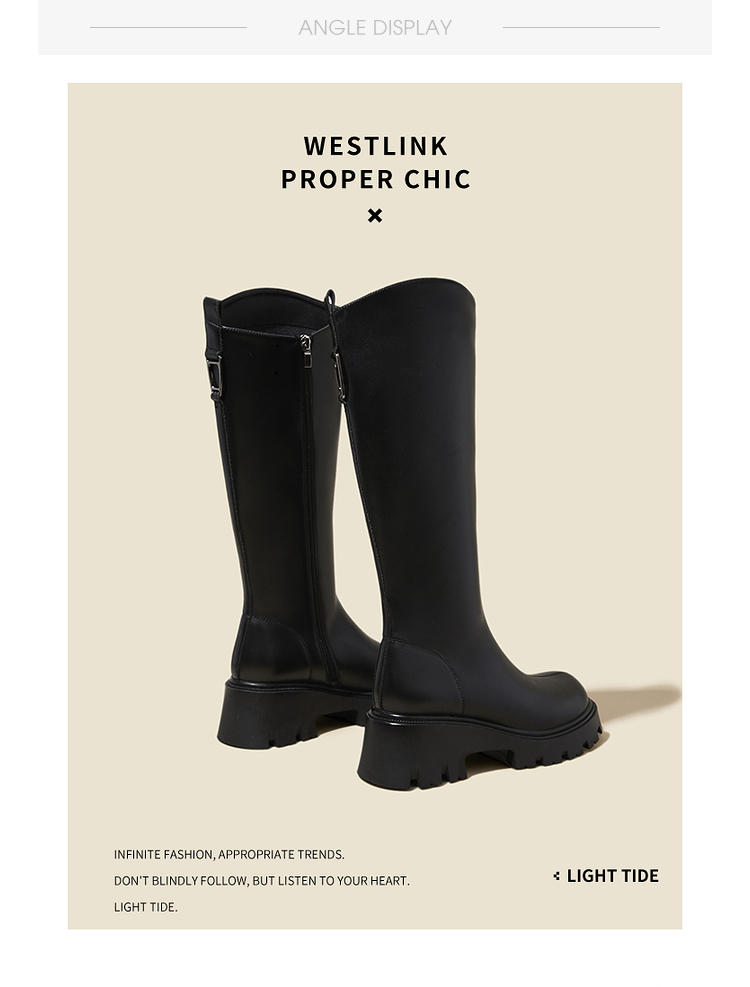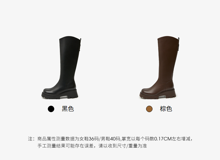 西遇增高厚底长筒骑士靴女新款秋冬小个子宽筒皮靴圆头黑色长靴子V3547571