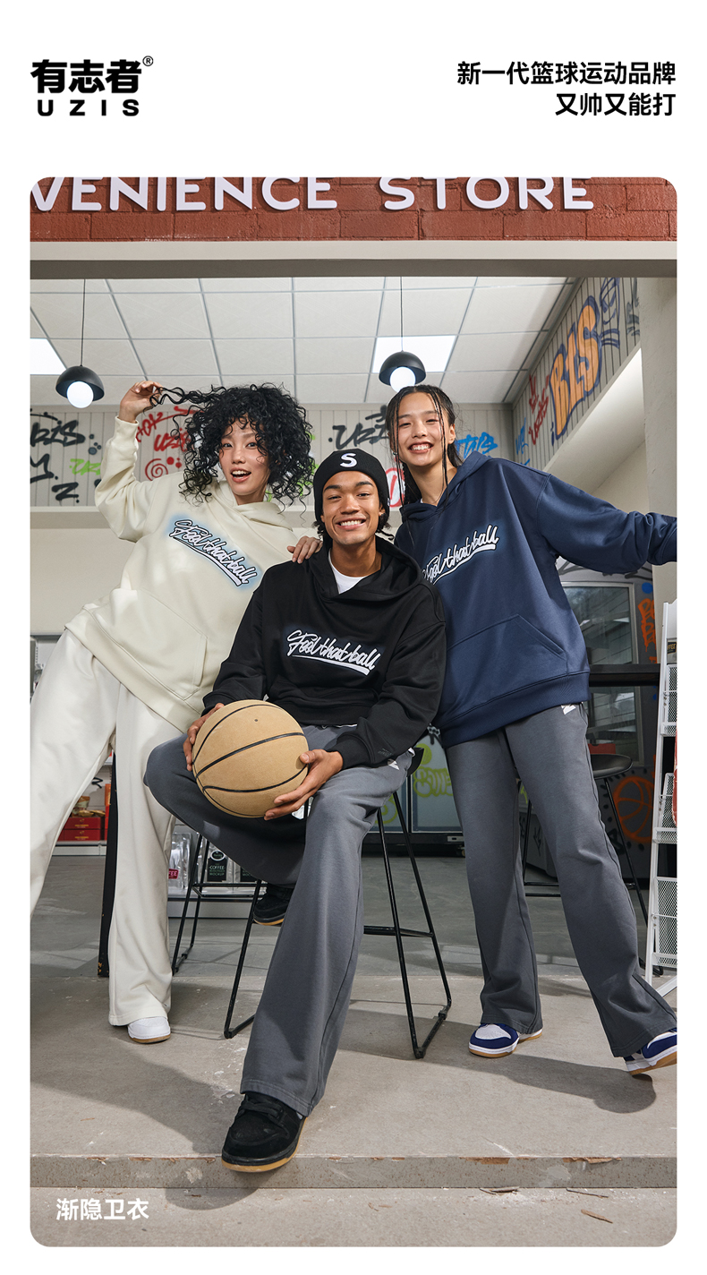 有志者UZIS 美式运动卫衣男篮球训练秋季休闲复古连帽套头衫[渐隐