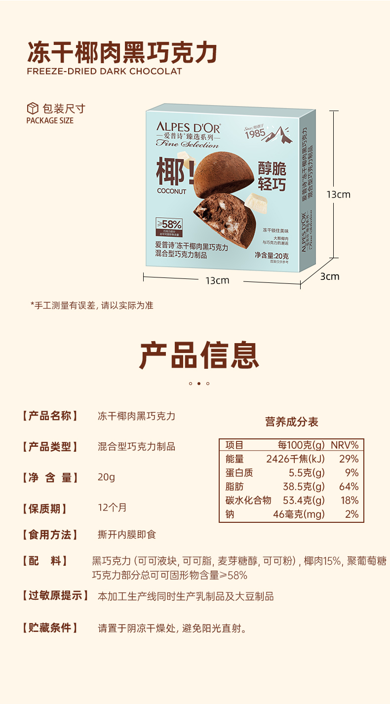 冻干椰肉黑巧克力*2(常规款)+可可威化饼干*2