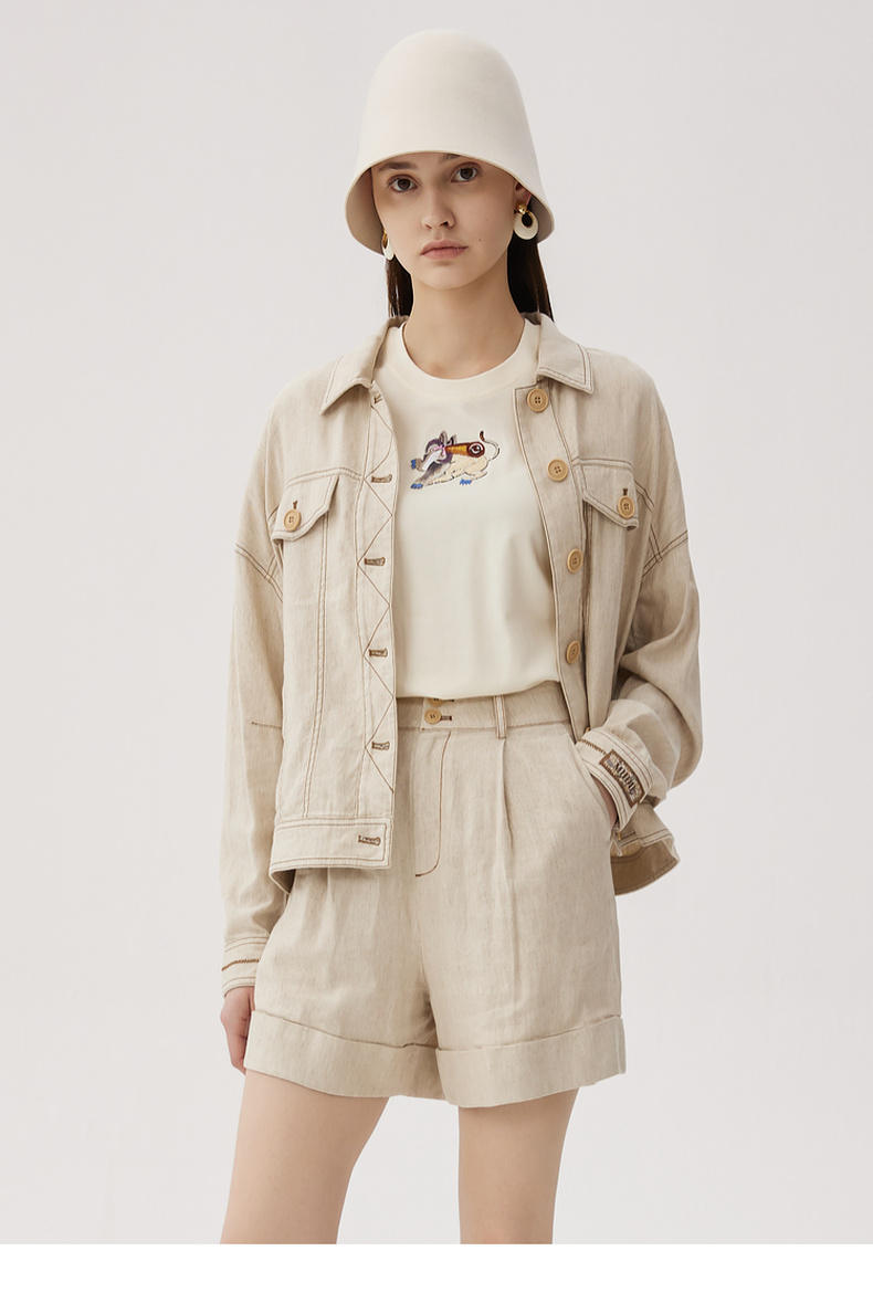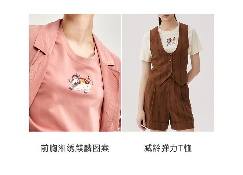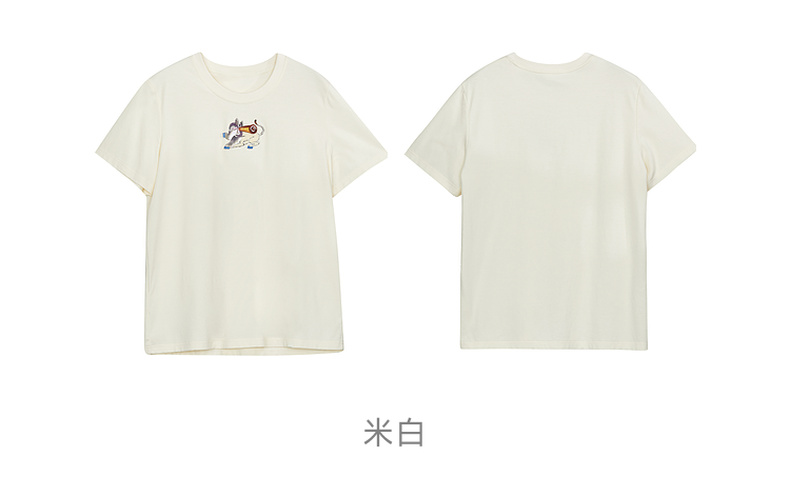谜底简约T恤短袖女2024秋新品百搭刺绣宽松圆领纯棉上衣243MT0963