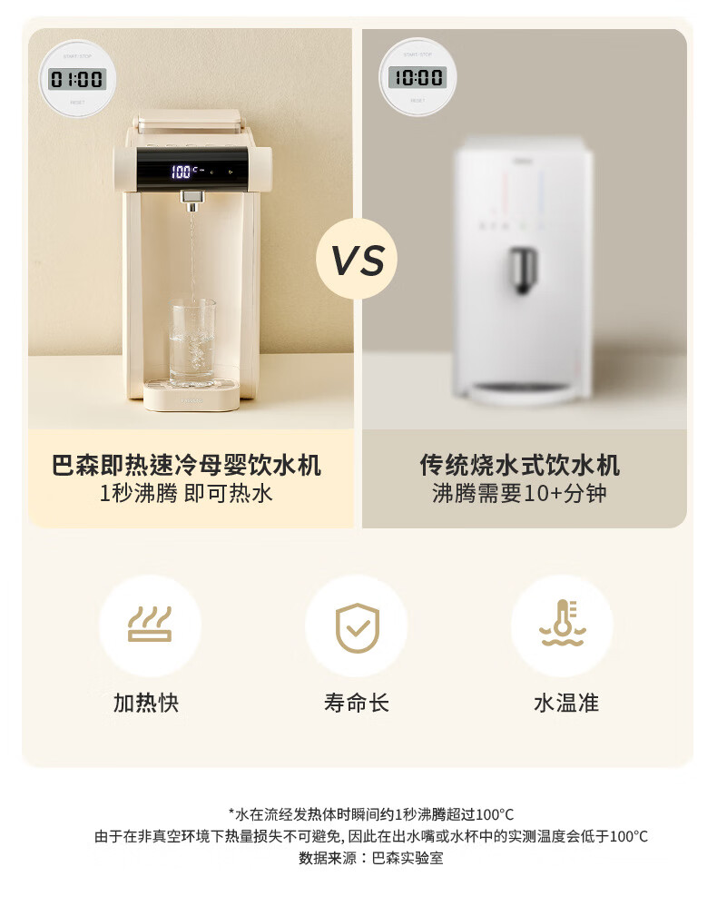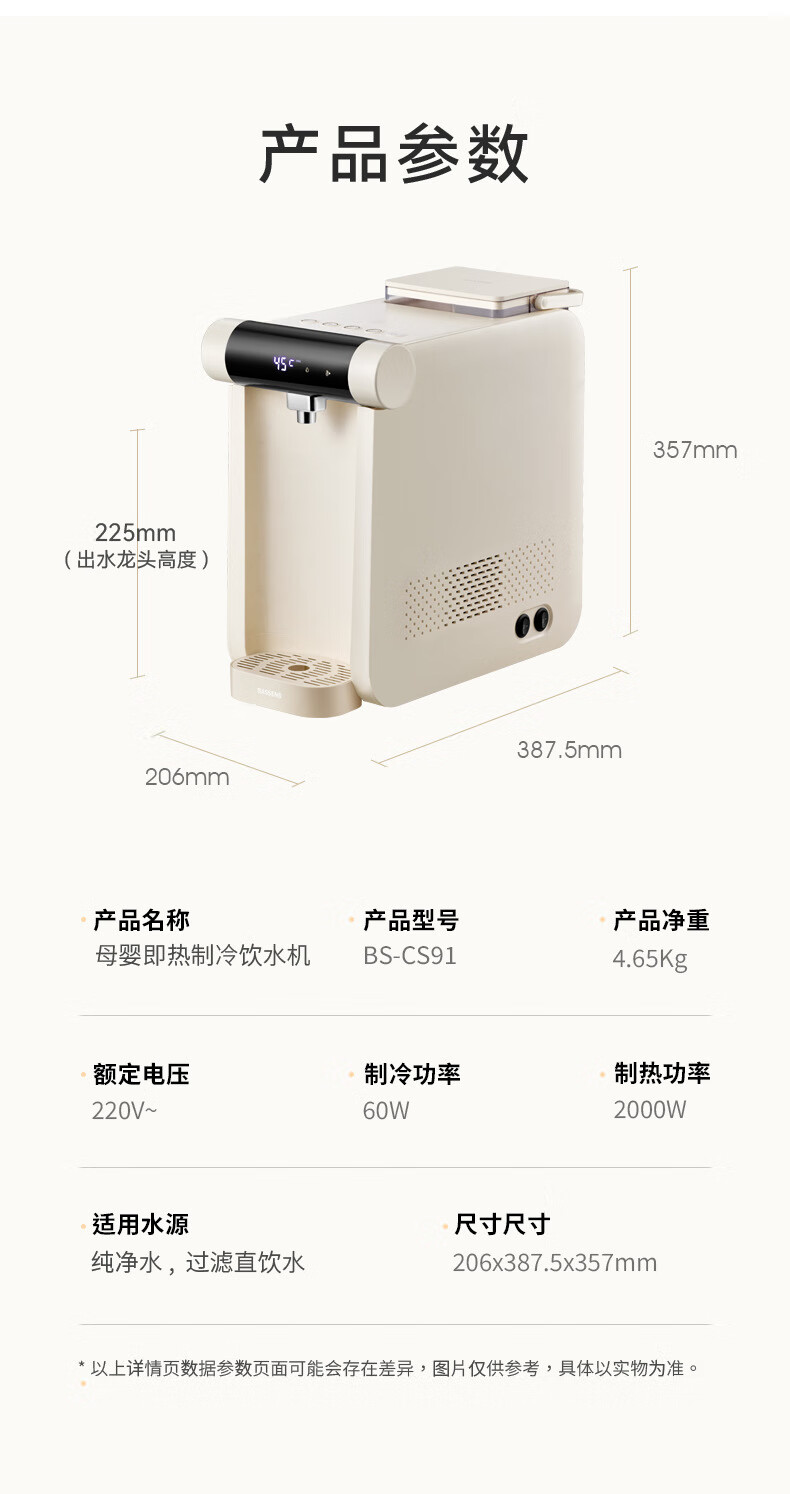 【小家电】BASSENS巴森即热式饮水机制冷家用UV杀菌办公桌面台式小型饮水器 BS-CS91即热制冷饮水机 HF