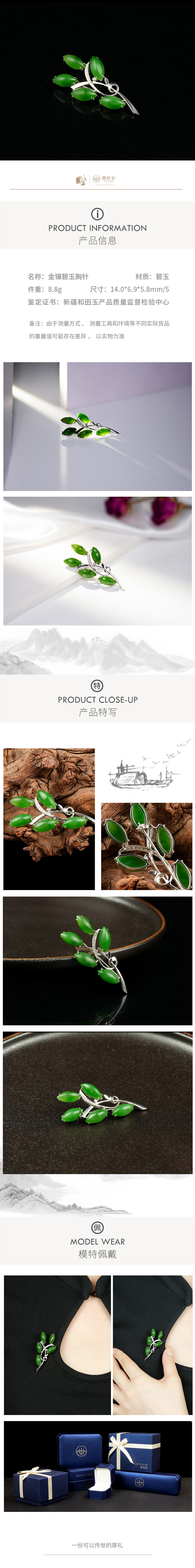 新疆国玉盟世玉和田玉金镶碧玉胸针【带证书·顺丰物流】