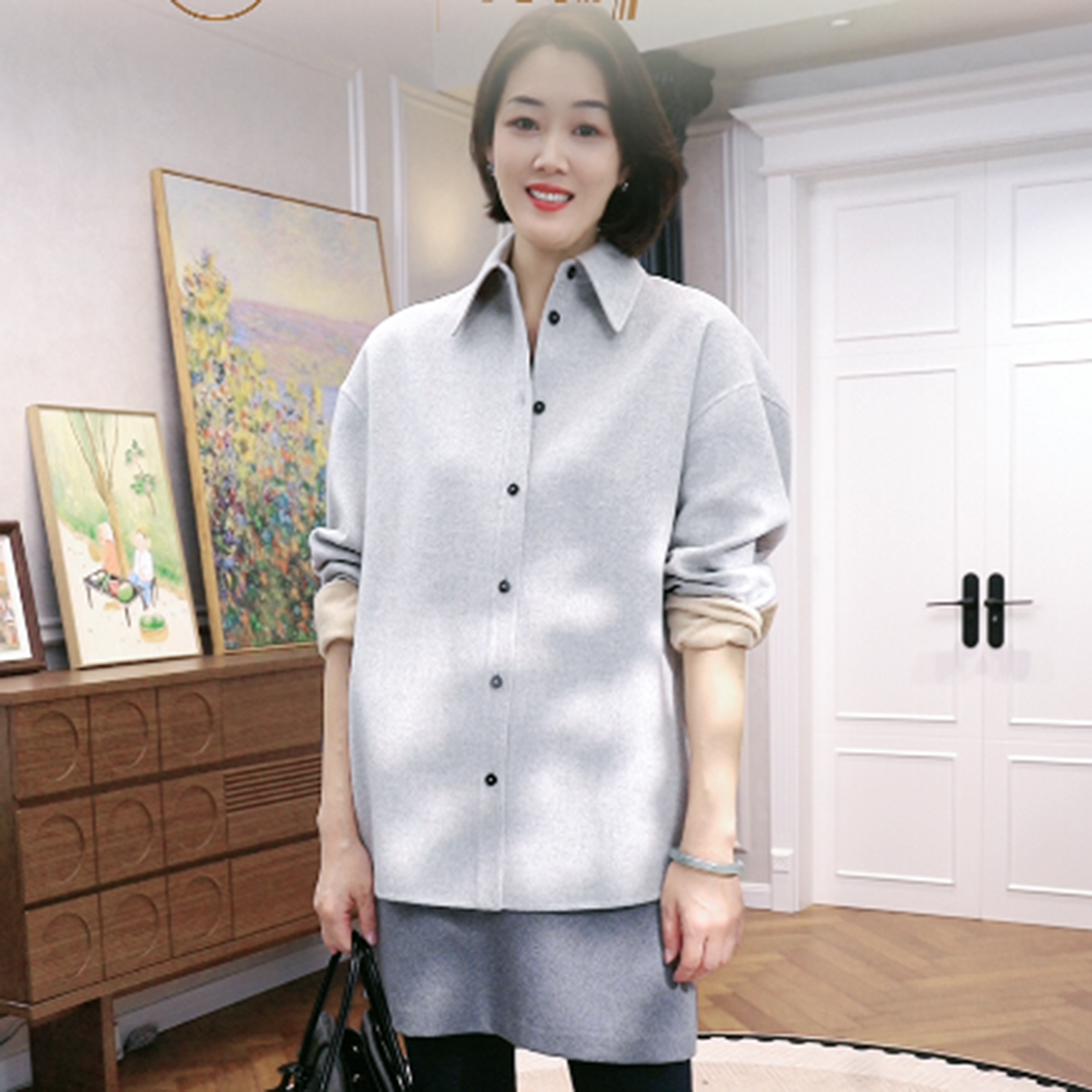 火桐hooton 铂金系列 绢丝羊毛双面异色短款大衣3535