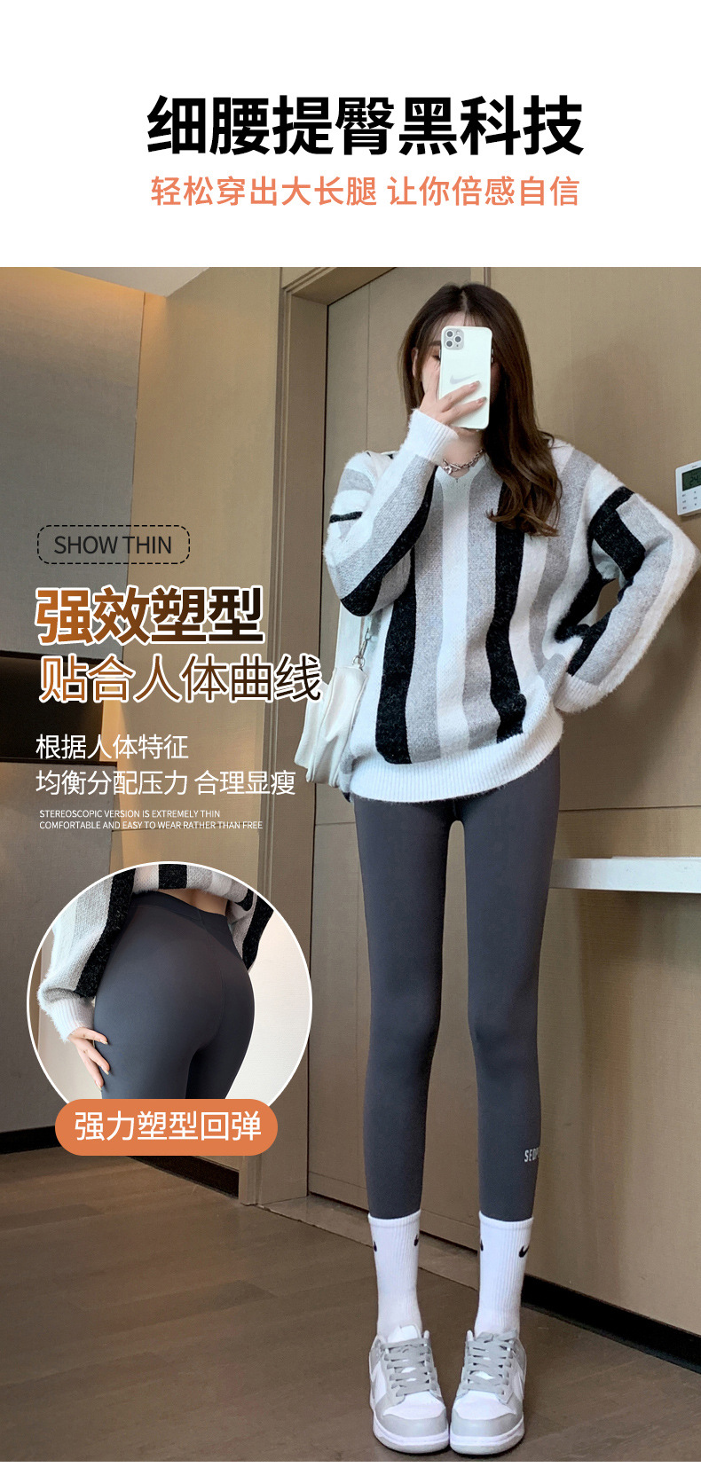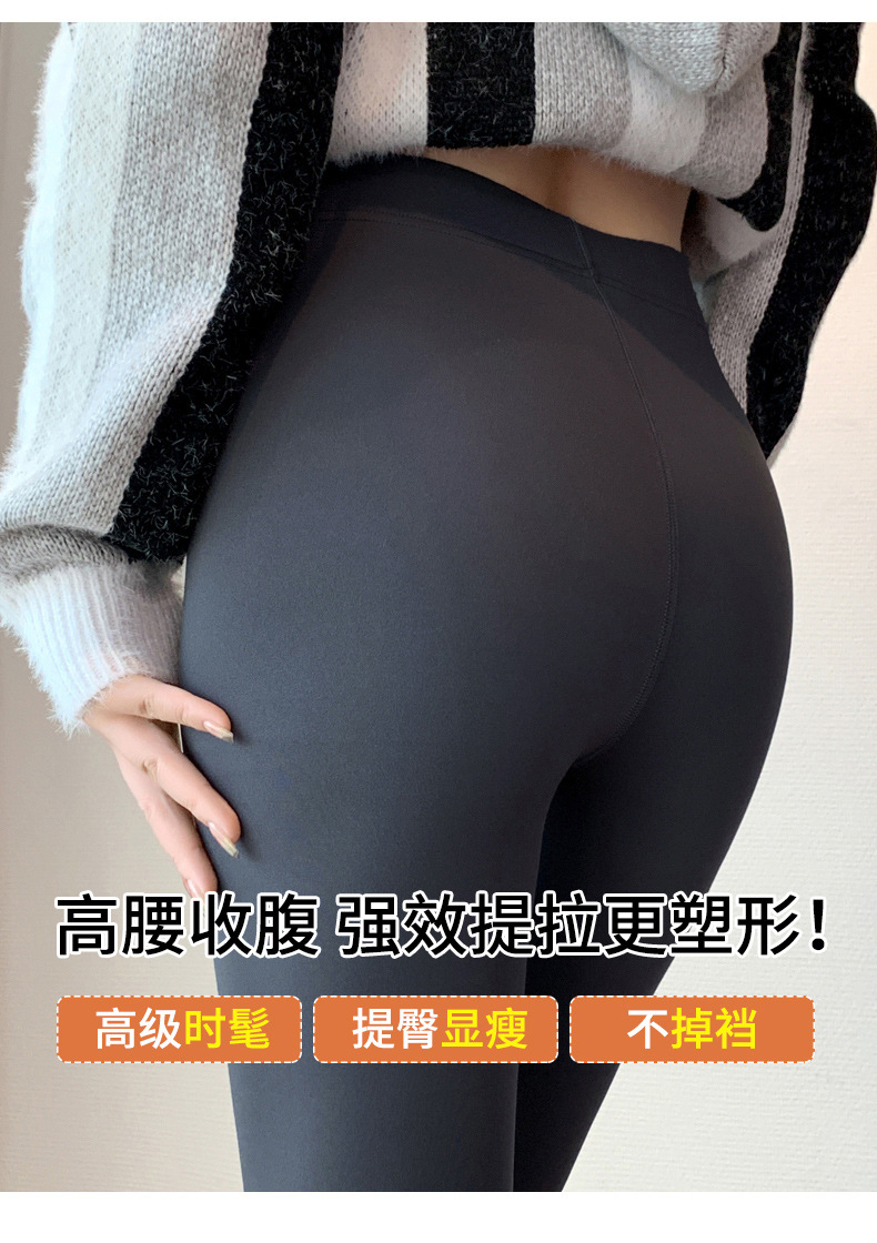 加绒鲨鱼裤女款外穿秋冬收腹提臀瑜伽芭比无痕打底裤黑色保暖棉裤 商品图5
