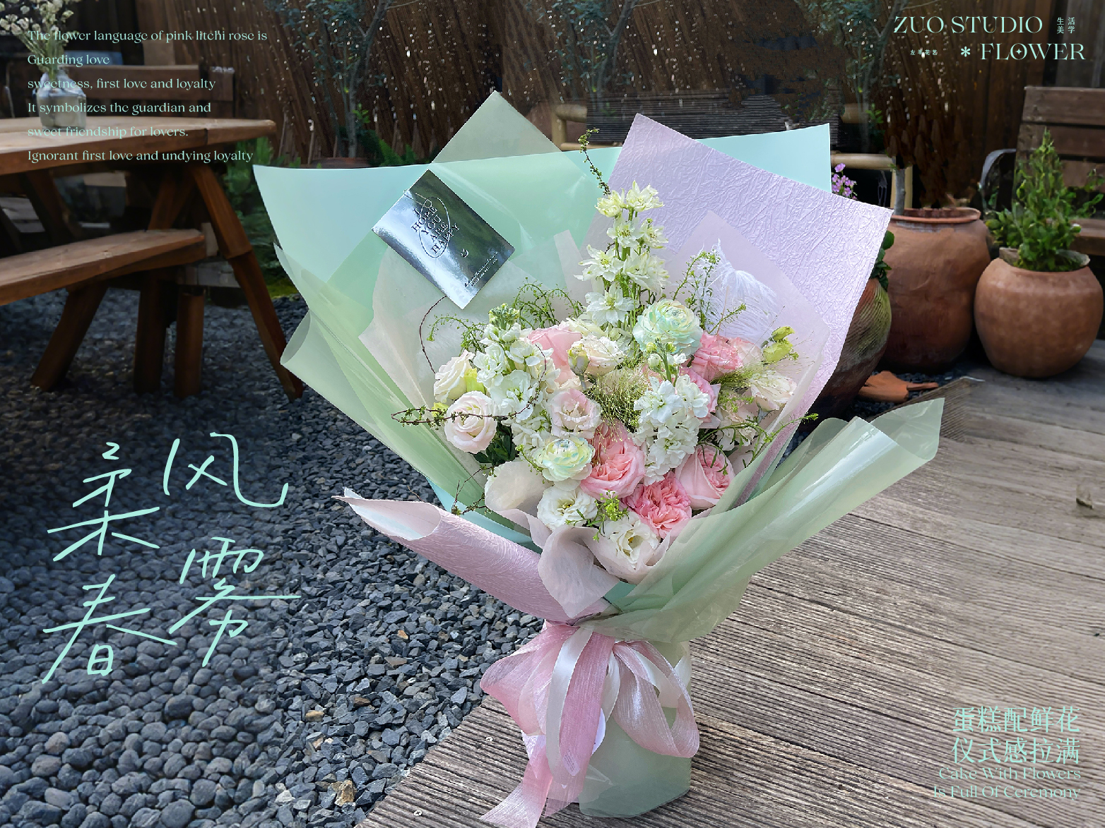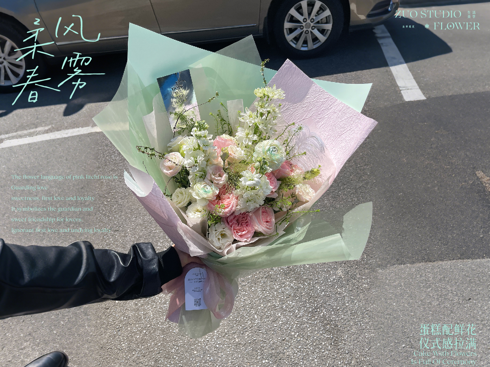 白羊座鲜花奢华款【柔风春雾】粉荔枝6支/白罗兰2支/大飞燕1支/洋牡丹 2支/白桔梗10-12朵/喷泉草2支/雪柳花1支/鸵鸟毛1支/仪式感鲜花/春日鲜花