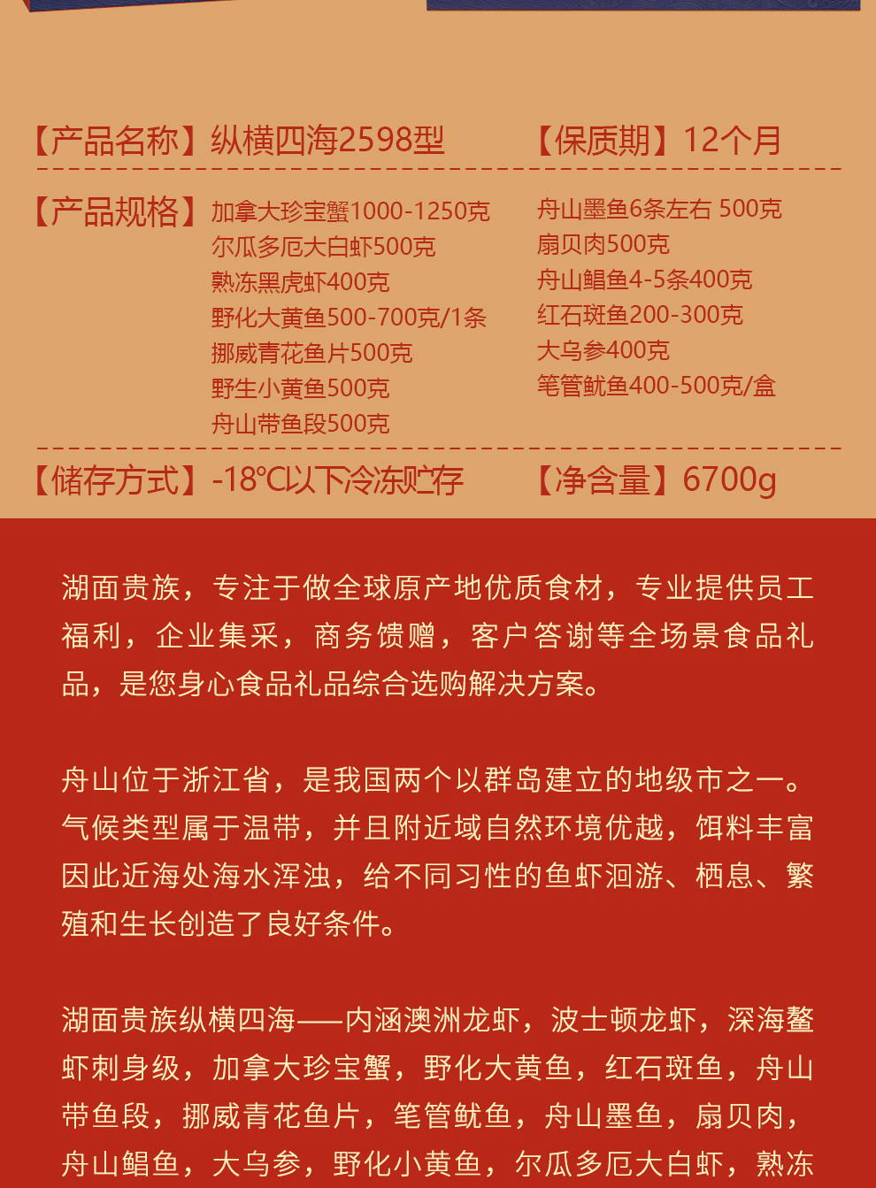 【湖面贵族佑晨光】全球海鲜2598型礼盒6.7kg