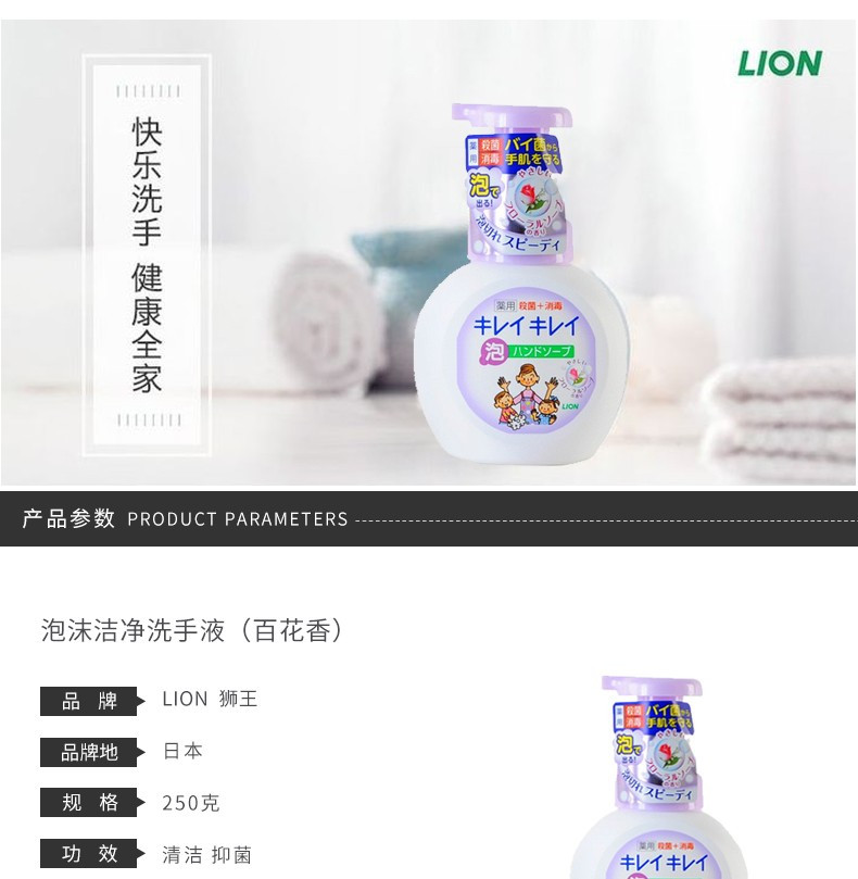 LION狮王 泡沫洁净洗手液 250ML 淡香 百花香 日本
