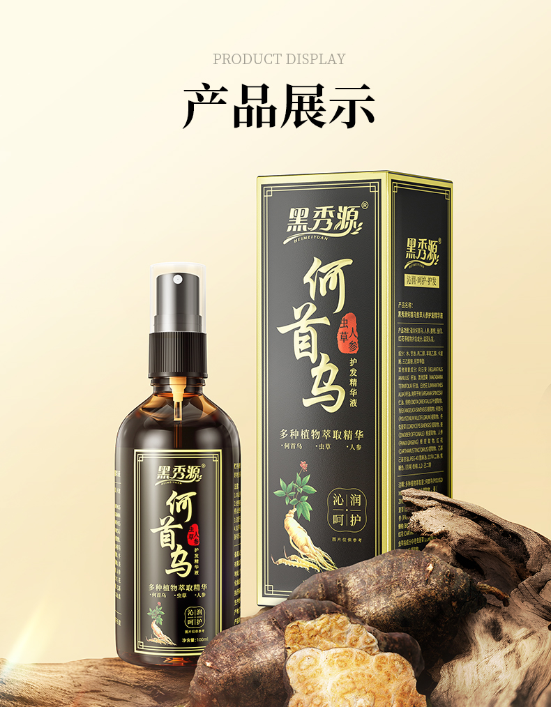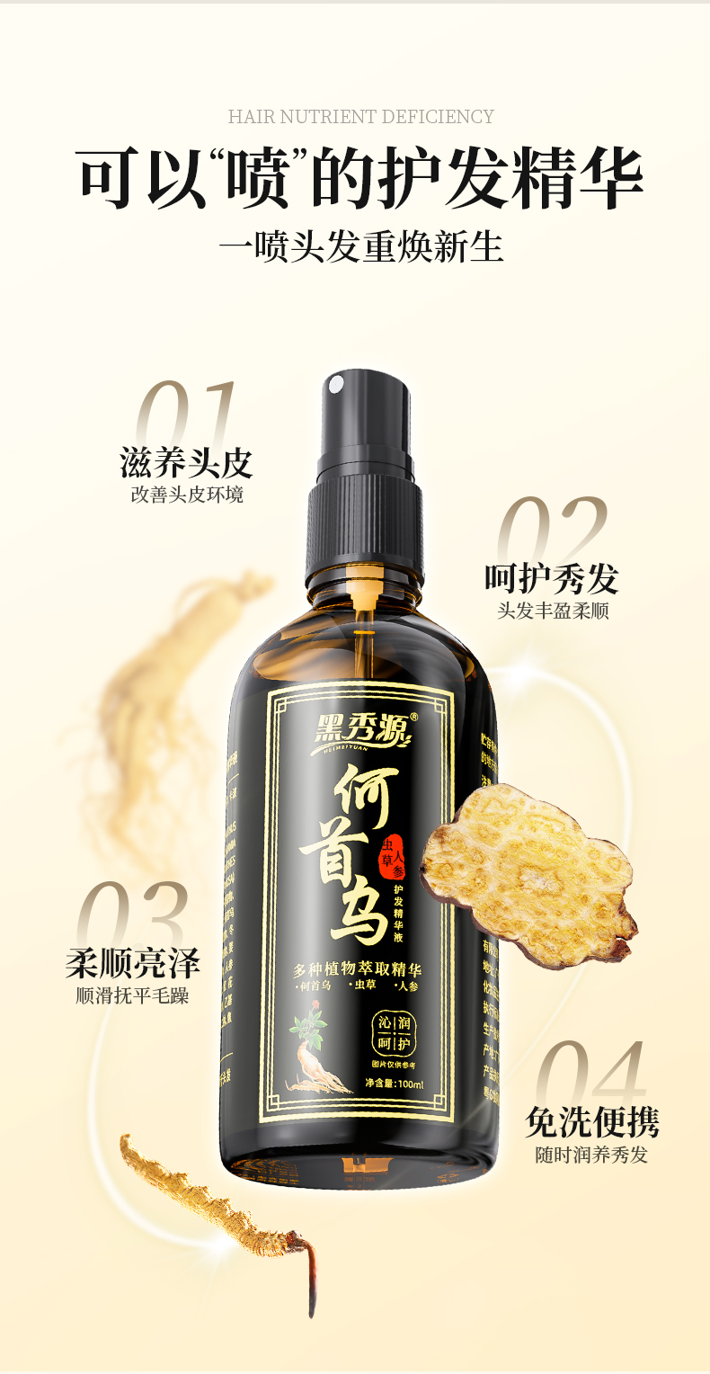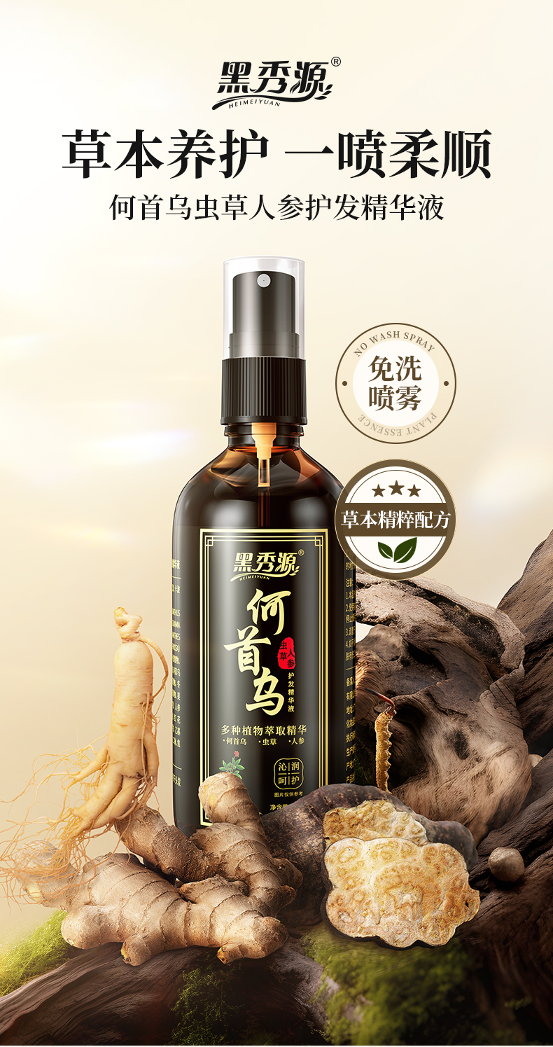 【金币兑换】黑秀源何首乌虫草人参护发精华液免洗草本喷雾养发护发滋润头皮