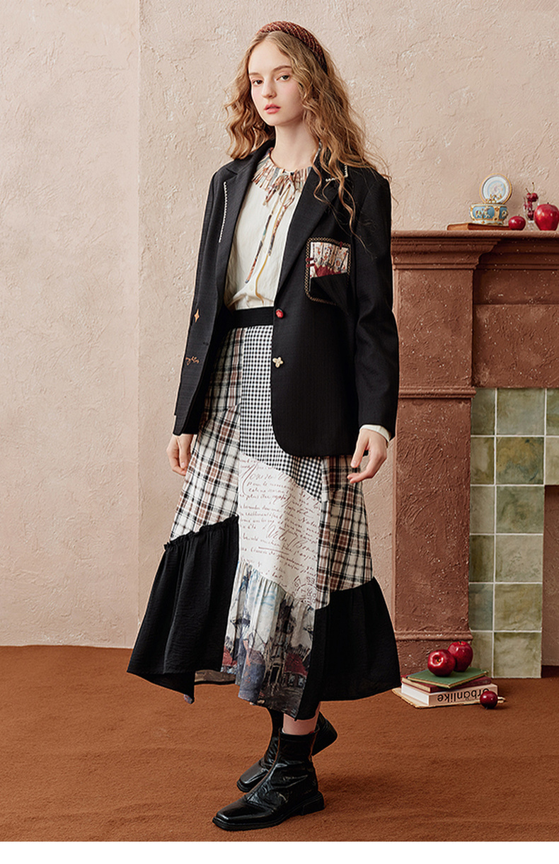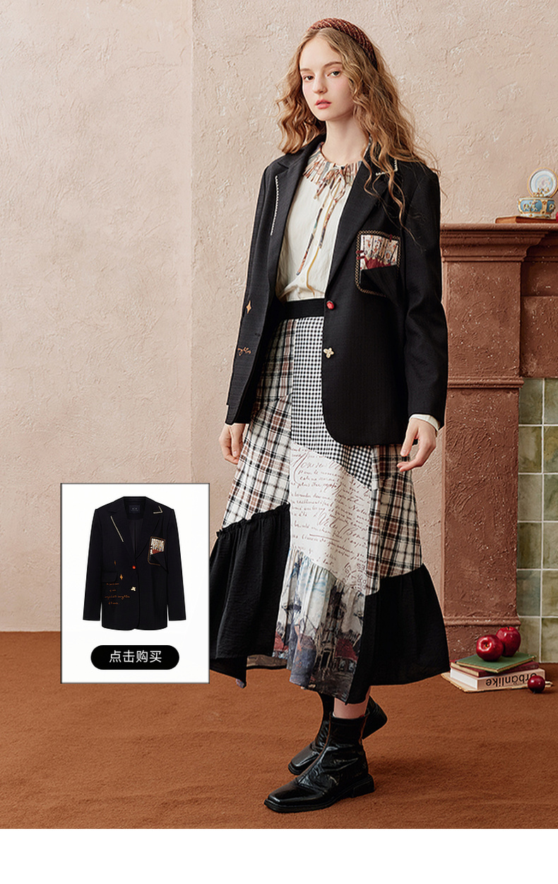 【暖冬内购】两三事梵高文艺莱茵河畔2025秋冬款印花拼接拼色海军领毛呢外套女