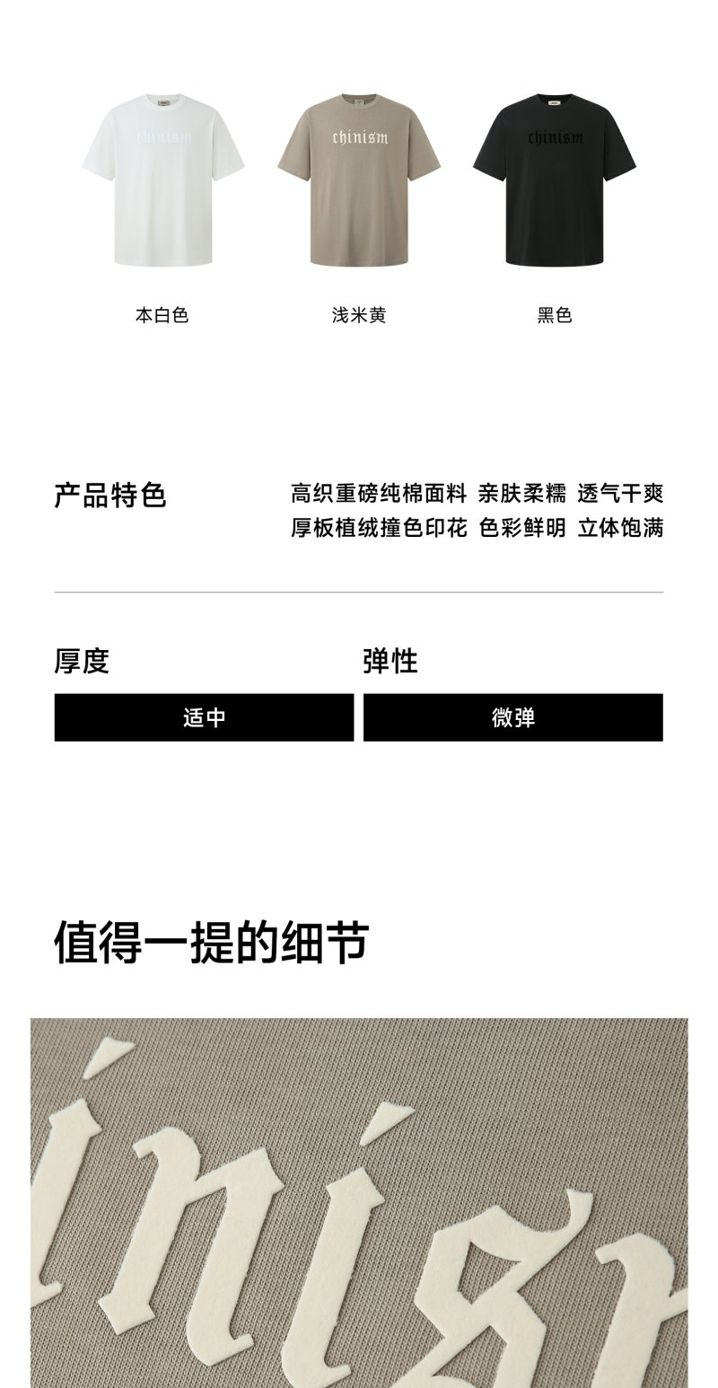 CHINISM赤尘 重磅325g短袖T恤男夏季新款美式男士纯棉半袖上衣
