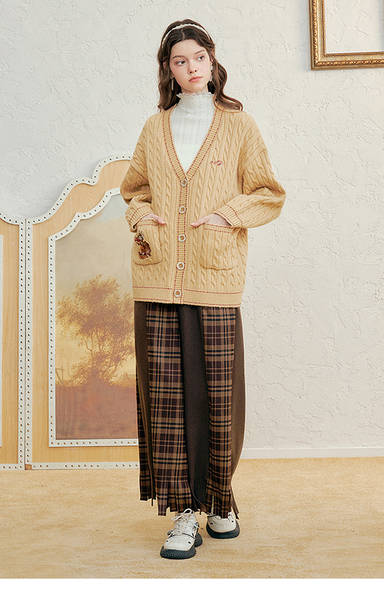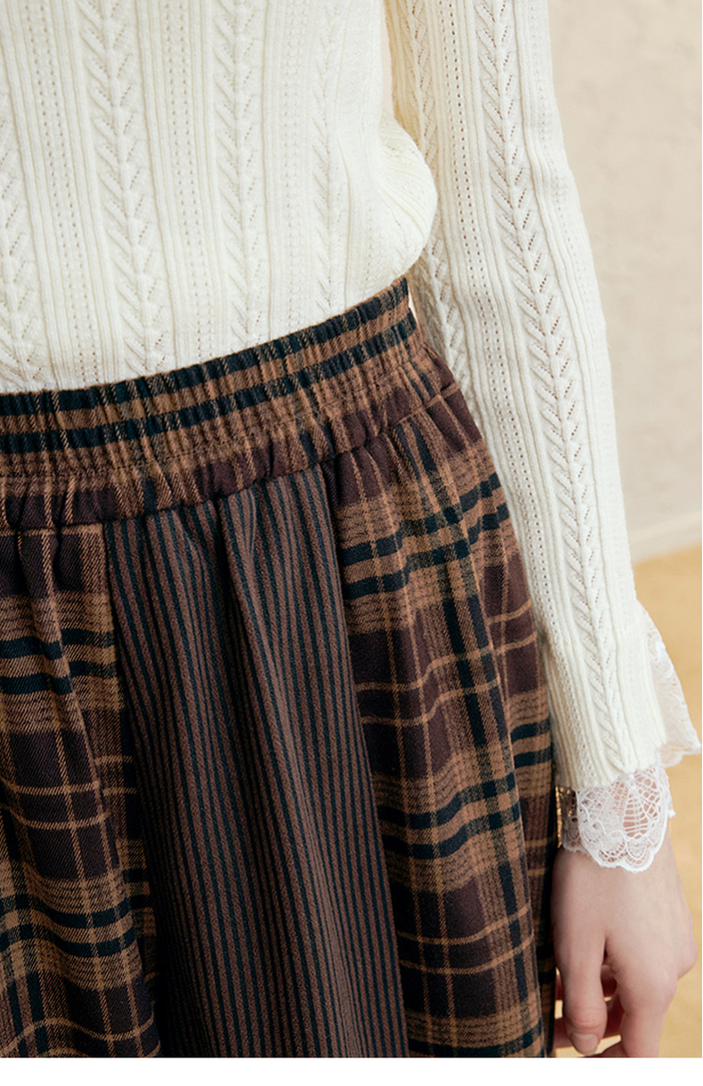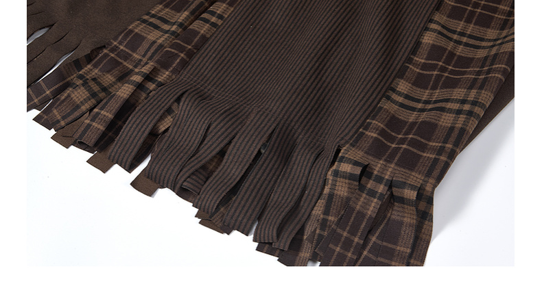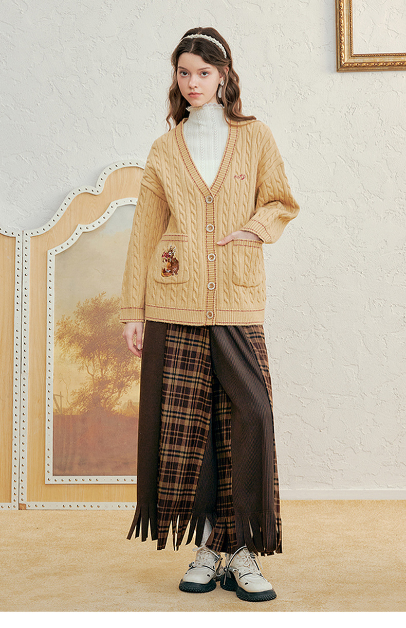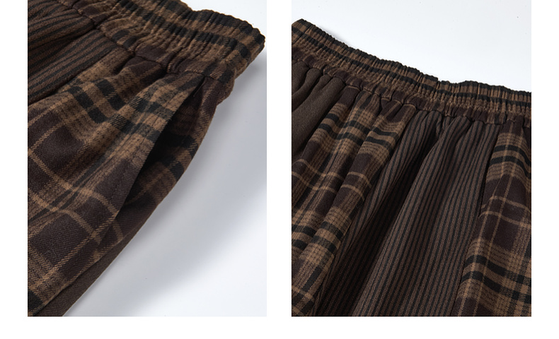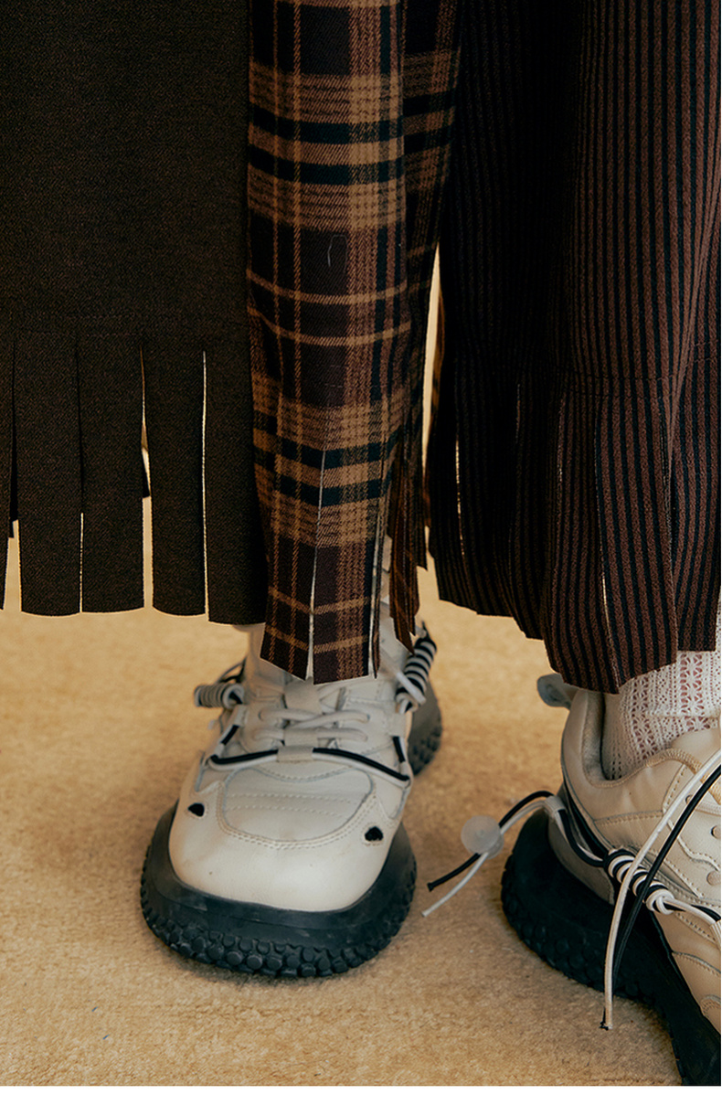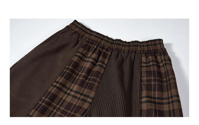 两三事格物求知2025春季新款时尚流苏裤脚口格子阔腿休闲裤女宽松