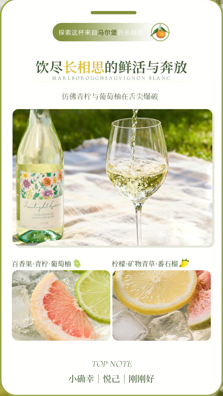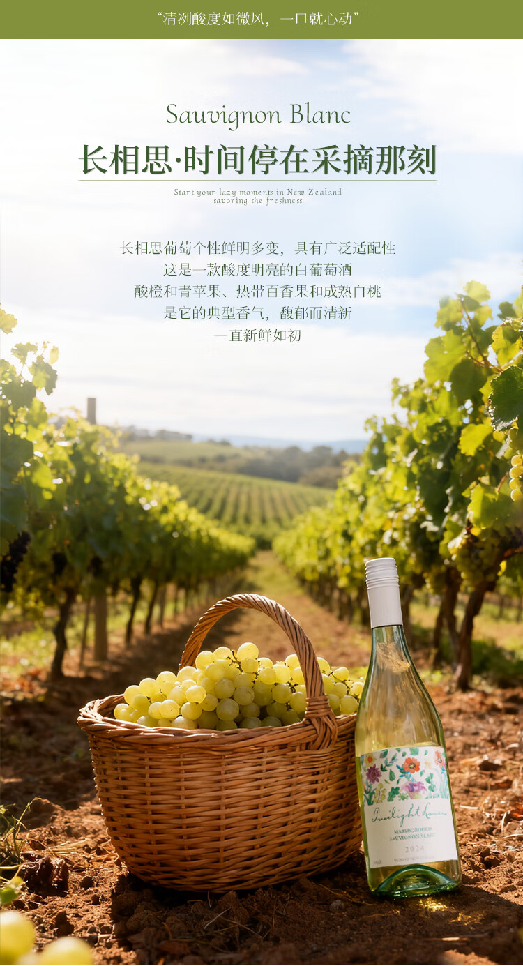 【马尔堡长相思】暮光恋人新西兰长相思 进口干白葡萄酒 13%vol