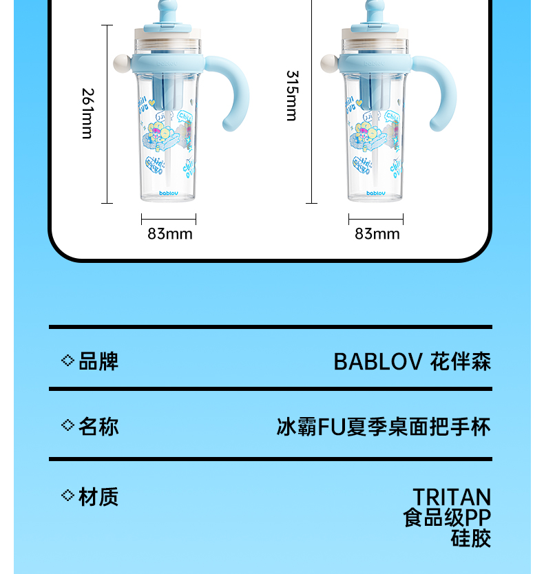 - BABLOV关注中国人的饮水健康,更不断探索未知可能性,专注于新生代自我个性表达,创造玩味新潮的产品体系。希望将水杯带入Z世代年轻人的生活,传递更多“饮”响力。