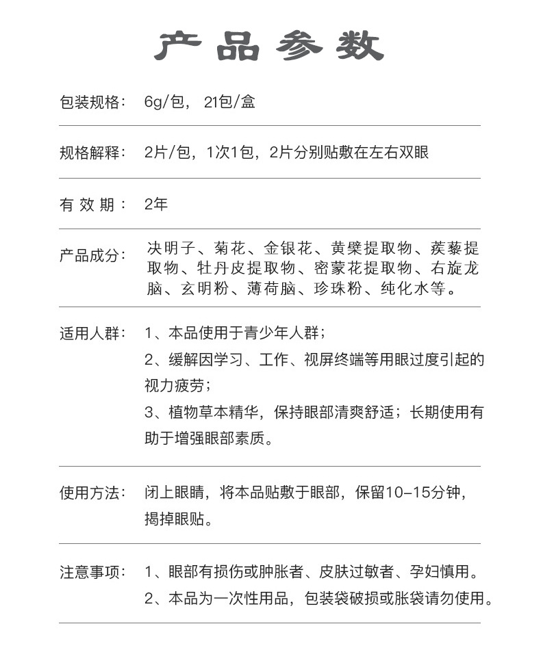 好视力青少年21包装缓解眼疲劳冷敷眼贴中药萃取儿童护眼贴