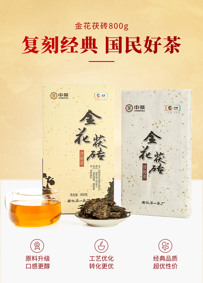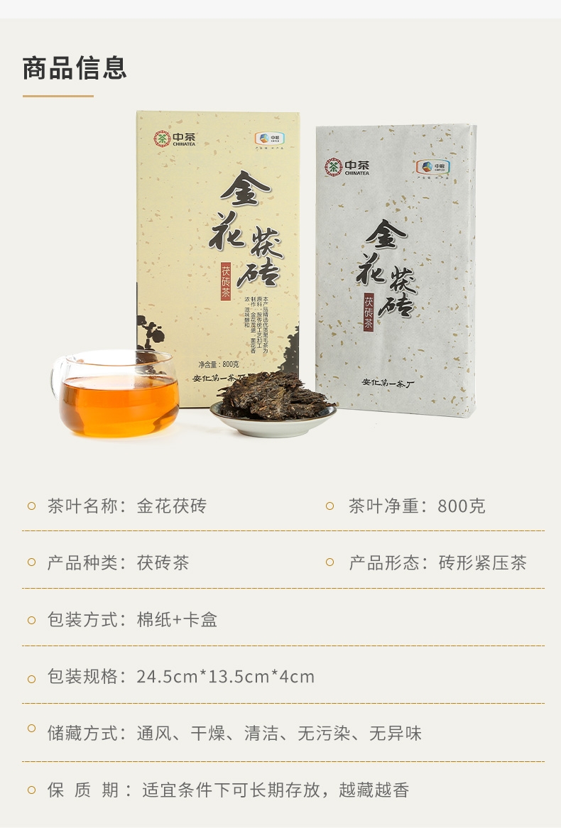 中粮-中茶安化黑茶中茶金花茯砖经典茯茶黑茶砖茶800g/金花饱满/原产地直发