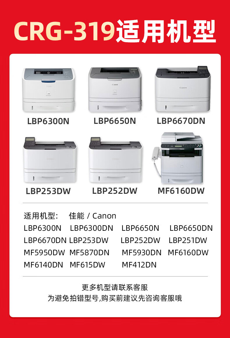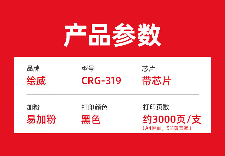 绘威CRG-319易加粉硒鼓 适用佳能6300 6300n 6300dn 6650n 6650dn MF5850dn 5870dn 5880dn惠普CE505A 505A