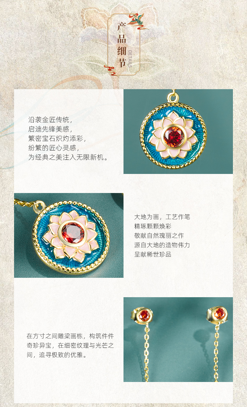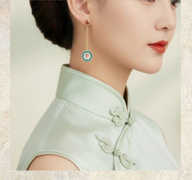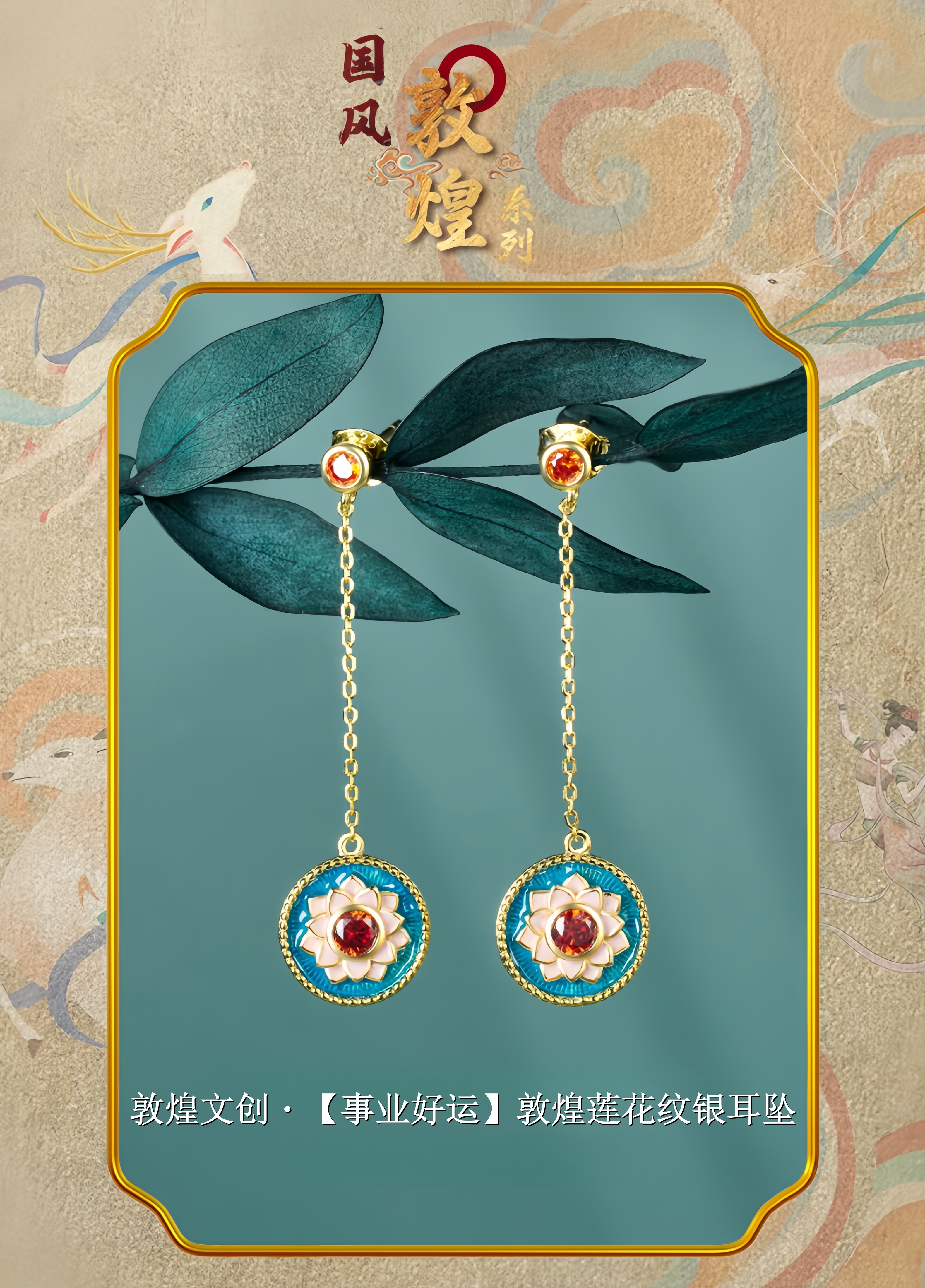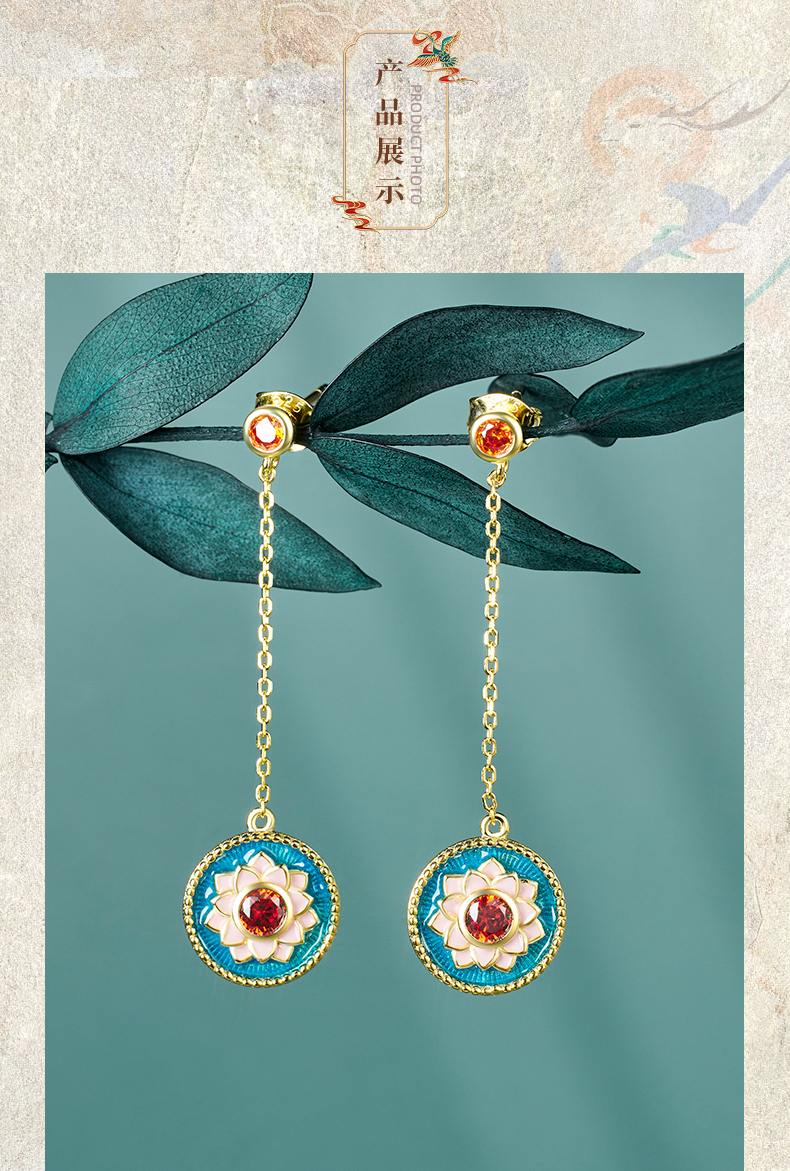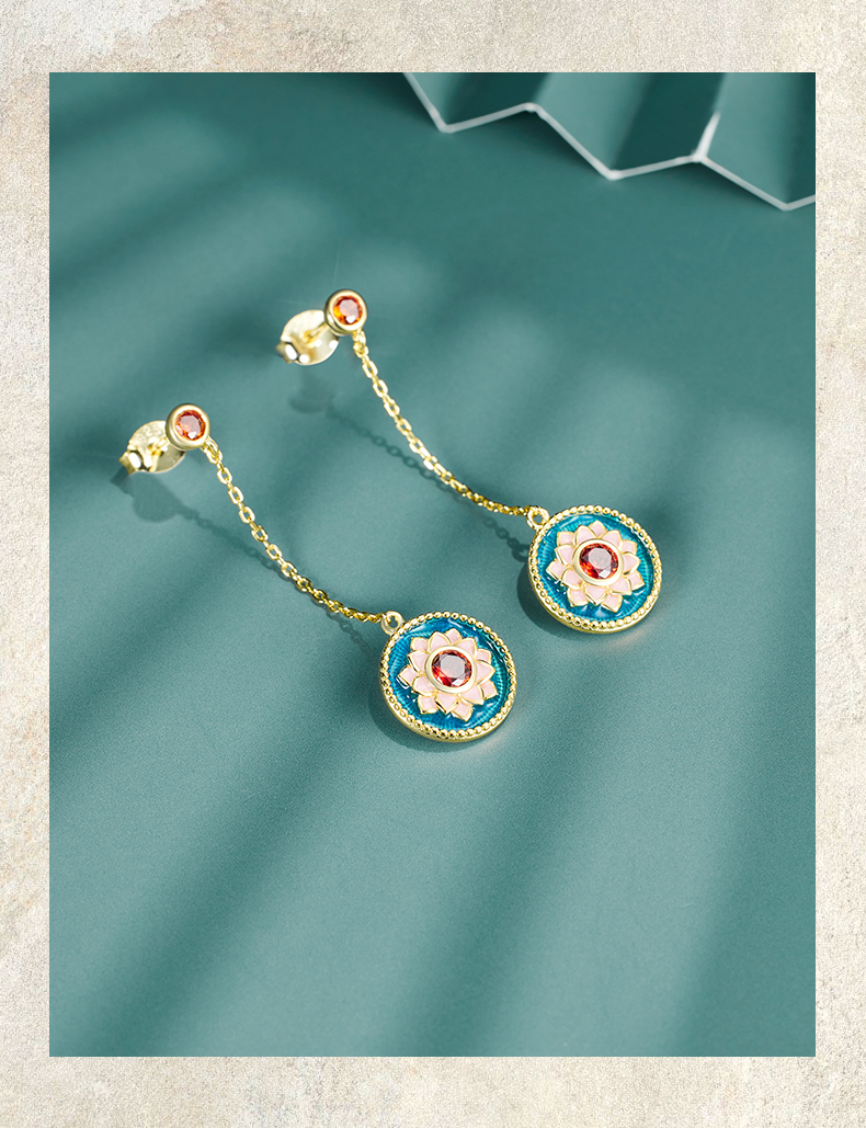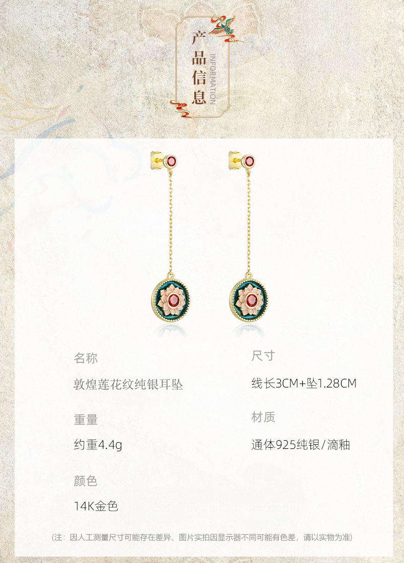 敦煌文创 敦煌莲花纹纯银耳坠