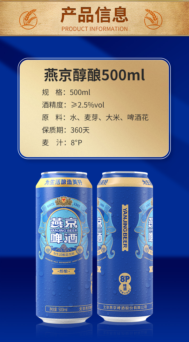 燕京醇酿 听装 8度 整箱500ml*12罐(云仓发货)