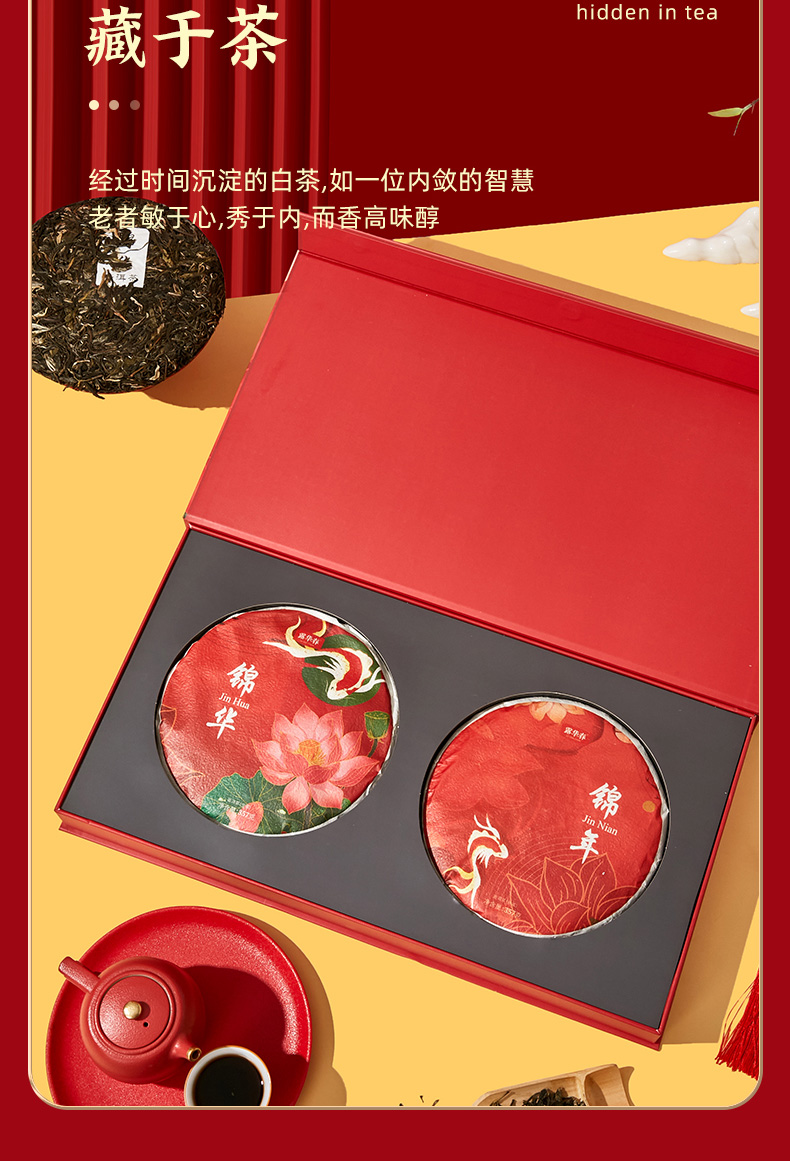 【自营】露华春茶叶礼盒 锦华锦年双饼礼盒357g*2 送长辈客户送礼