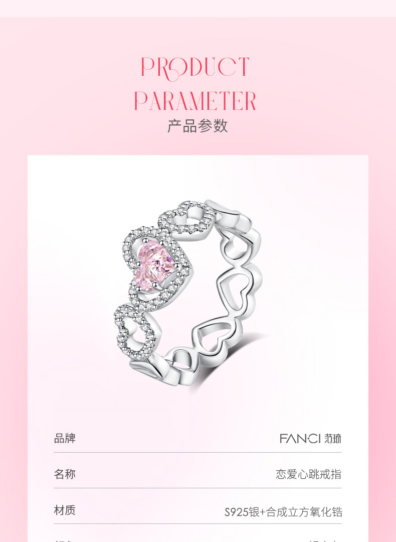 FANCI范琦始于2012年,以珠宝表达内心为初衷,聚焦不同亲密关系情感表达,联结无形情感,以情感符号「I FANCI U」传情达意,诠释“恋爱戴范琦,起点是你,终点亦是你”始终如一的恋爱价值观。