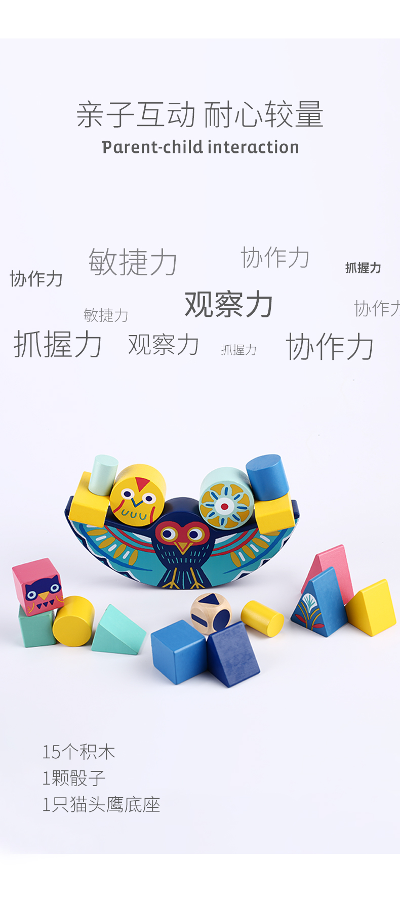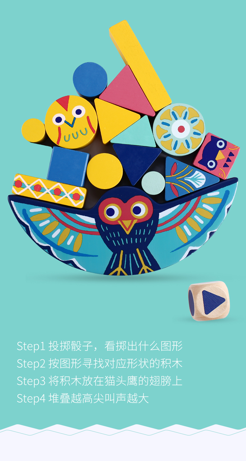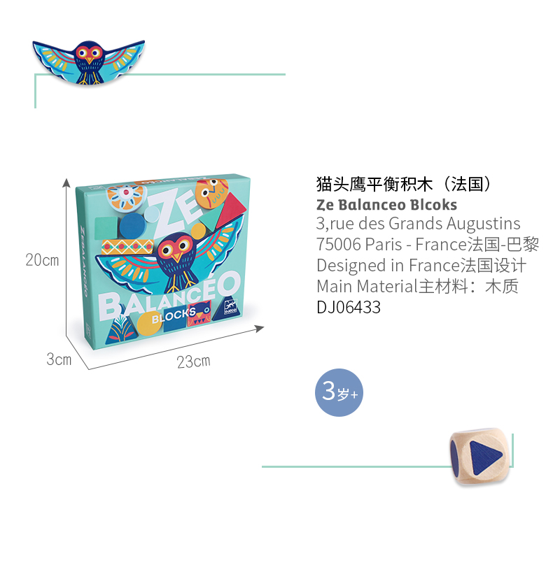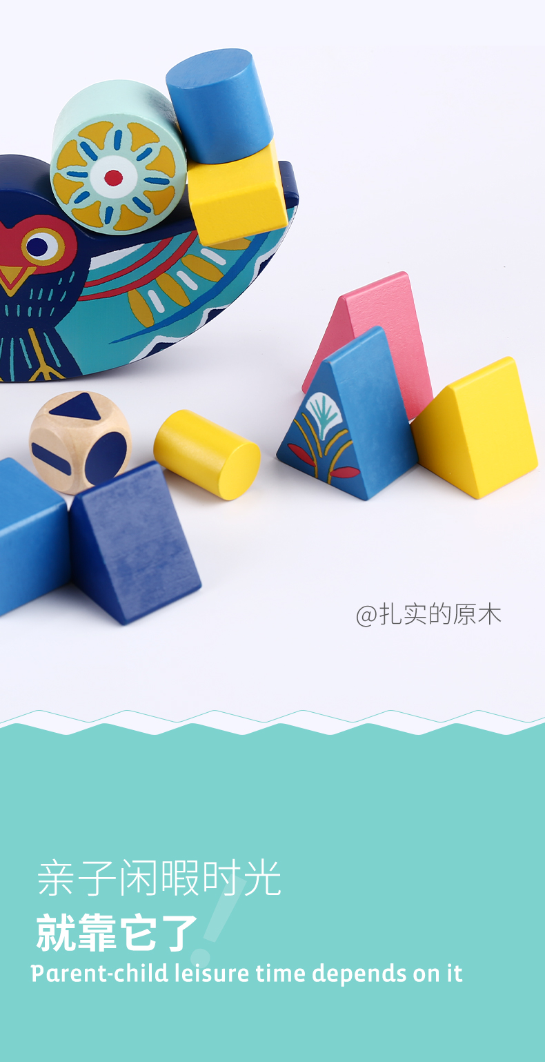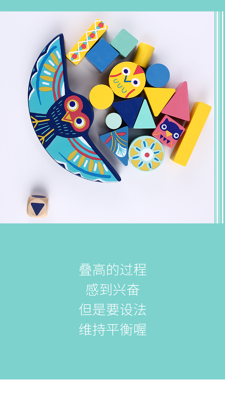 djeco动物平衡猫头鹰积木大块玩具儿童益智2-3岁男孩堆搭智力游戏