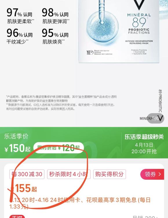 【商品名称】薇姿89益生菌密集修护焕活精华面膜