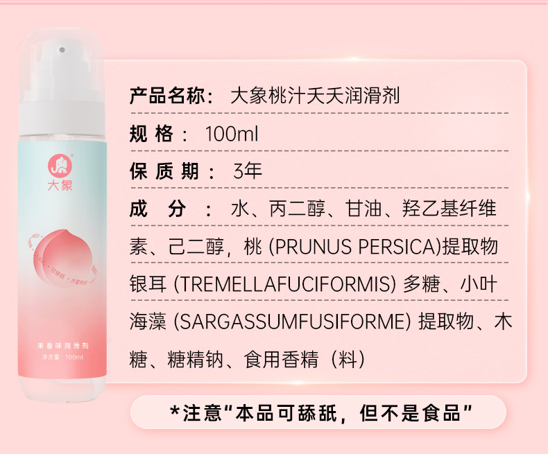 【双旦狂欢·钜惠来袭】 大象果味润滑 桃汁夭夭润滑液 可舔 水蜜桃味