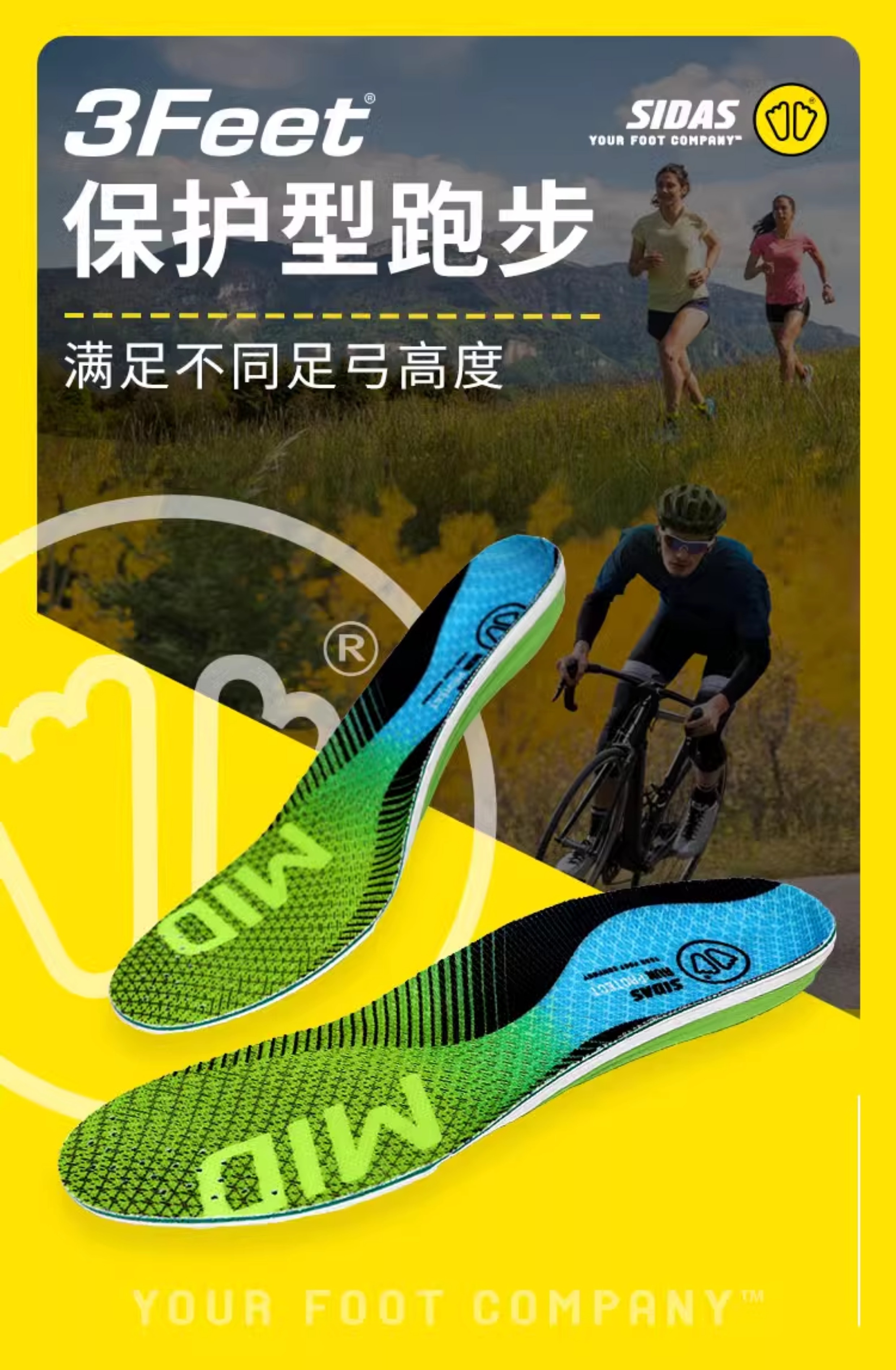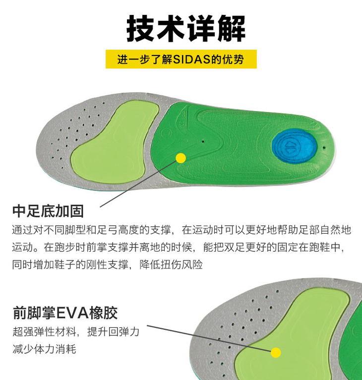 SIDAS 希达斯鞋垫 3FEET 专业扁平足矫正足弓支撑减震 保护型