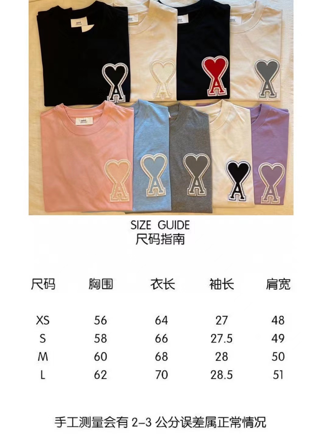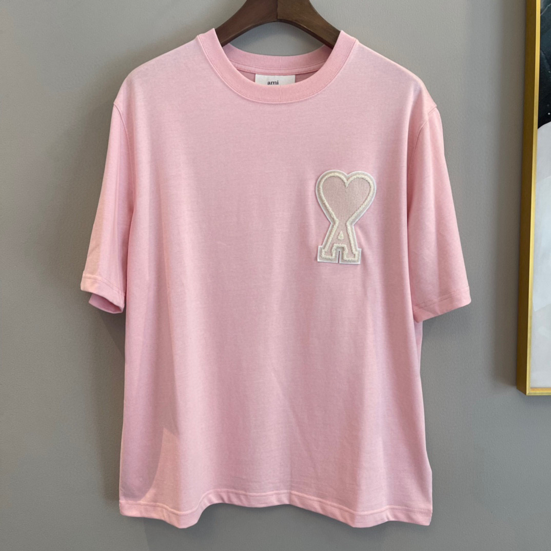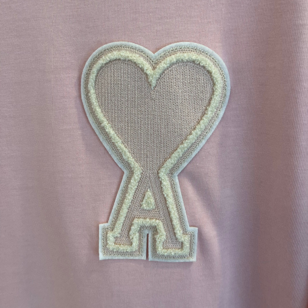 Ami 2021ssDe Coeur贴花短袖T恤-嫩粉色