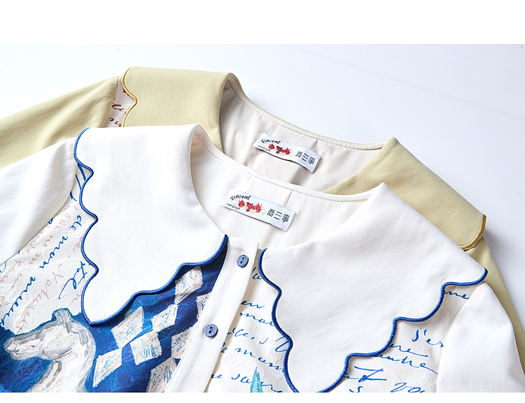 两三事 蜜夏神谕 2025春季新款文艺风蝴蝶结大翻领印花衬衫女宽松