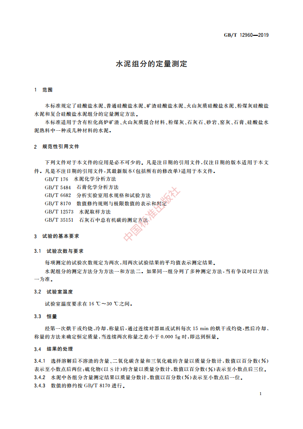 书名:GB/T 12960-2019 水泥组分的定量测定