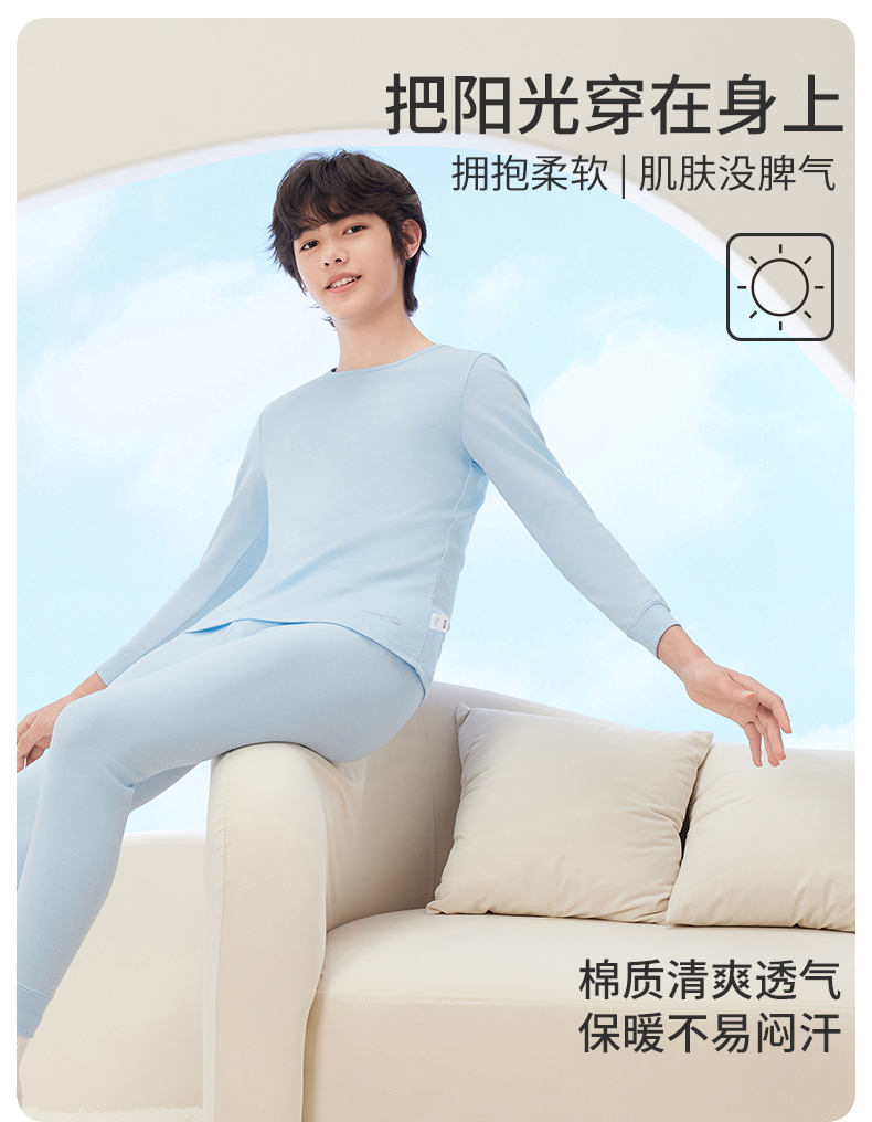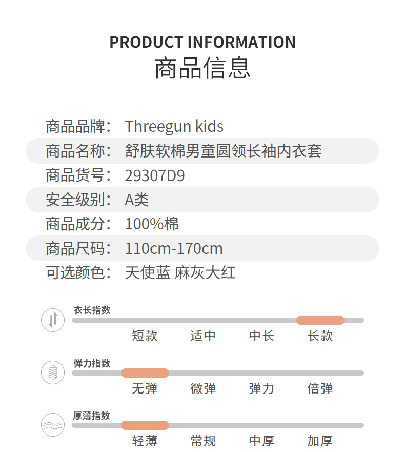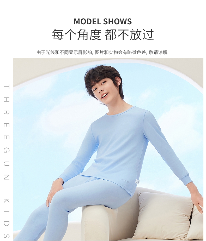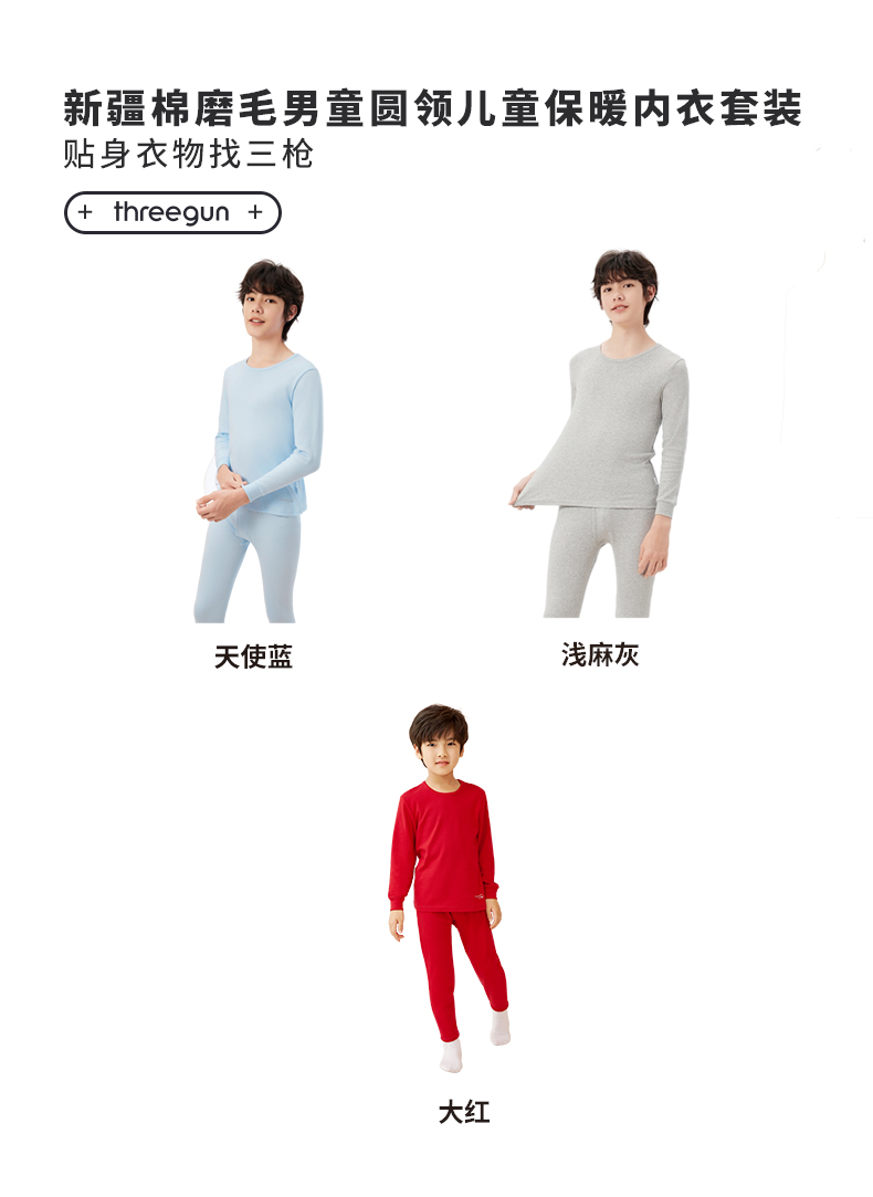 Threegun三枪 【新疆棉】磨毛男童圆领儿童保暖内衣套装-29307D911