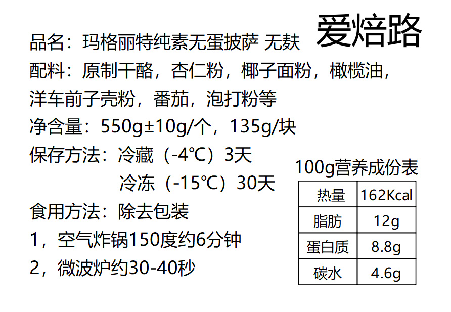 玛格丽特纯素无蛋披萨(双重芝士卷边)低碳生酮无麸质