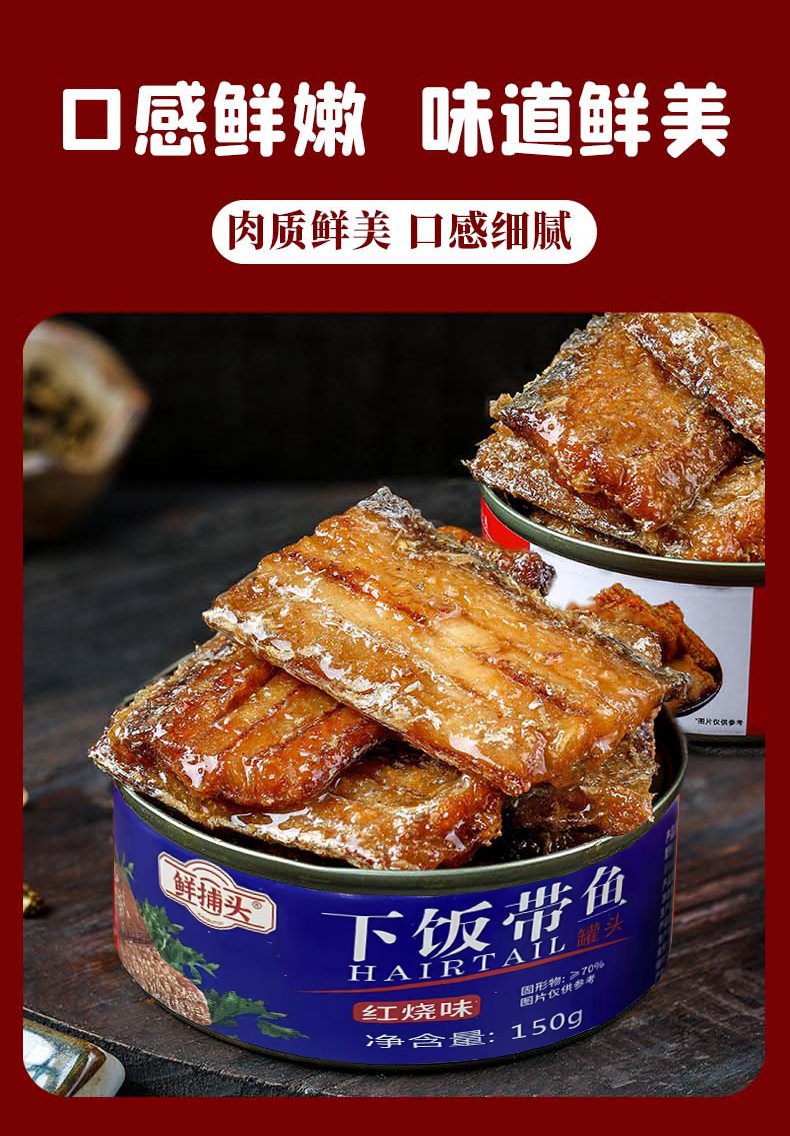 【地道美食丨鲜捕头渤海湾带鱼罐头150g*10罐】原料鱼捕捞自渤海深海,选用中段带鱼,鱼肉厚实,经高温杀菌工艺处理,秘制香料熬制,鱼骨鱼刺酥烂不用吐刺,汤汁鲜美口味浓郁,肉香十足