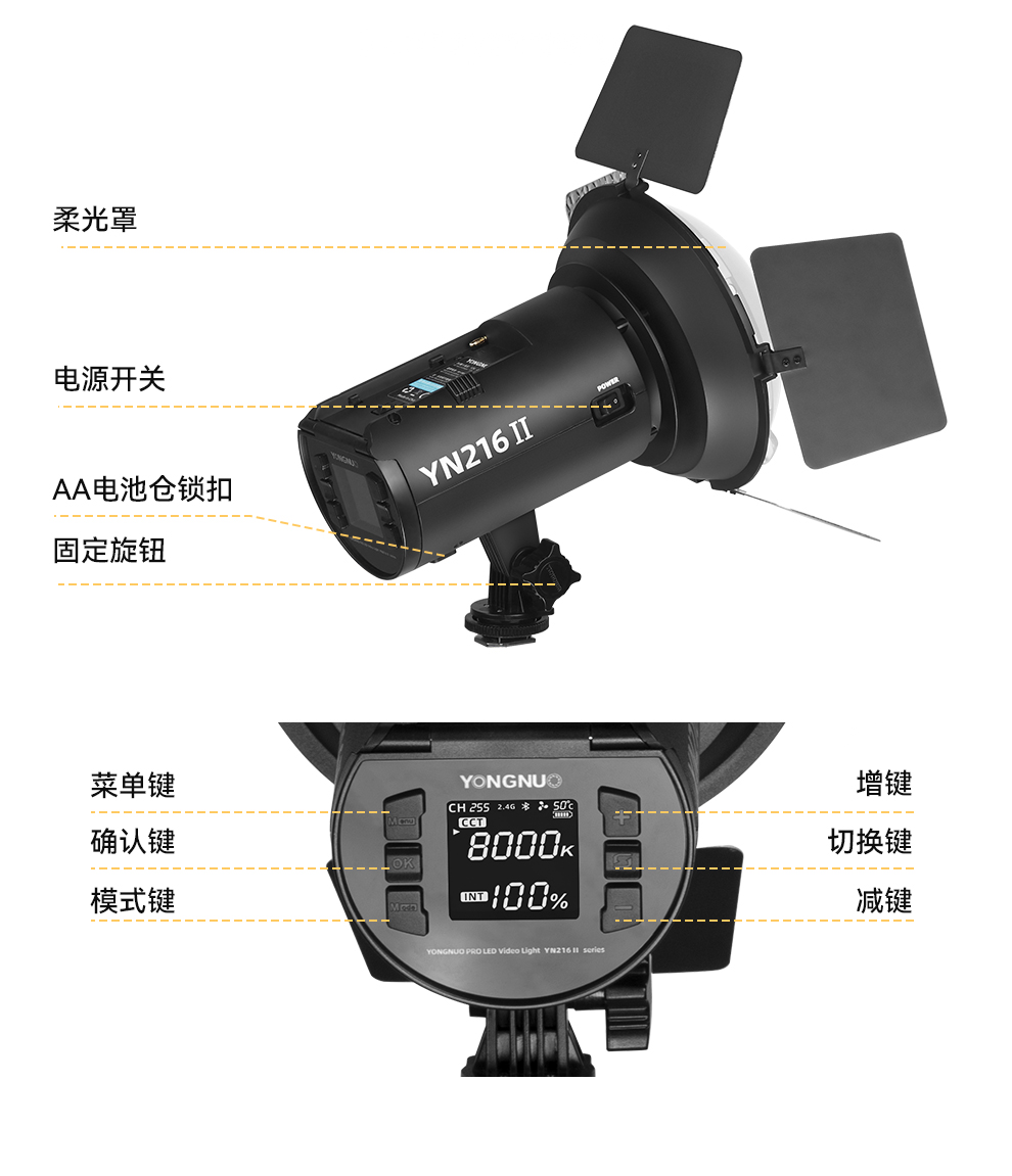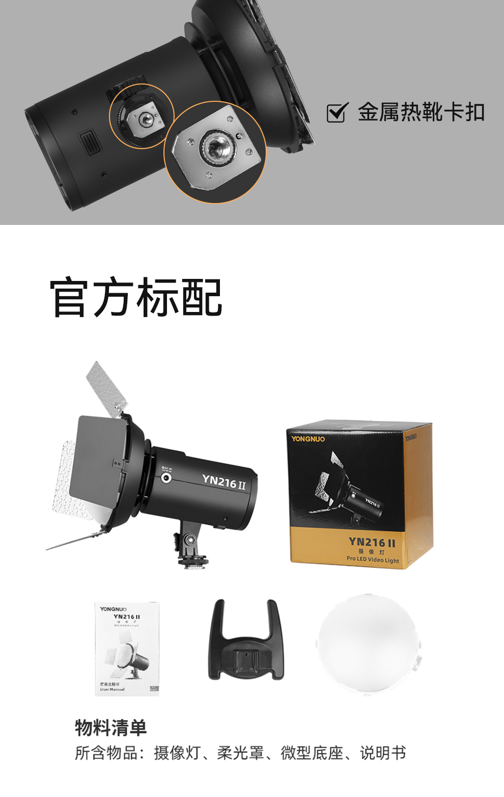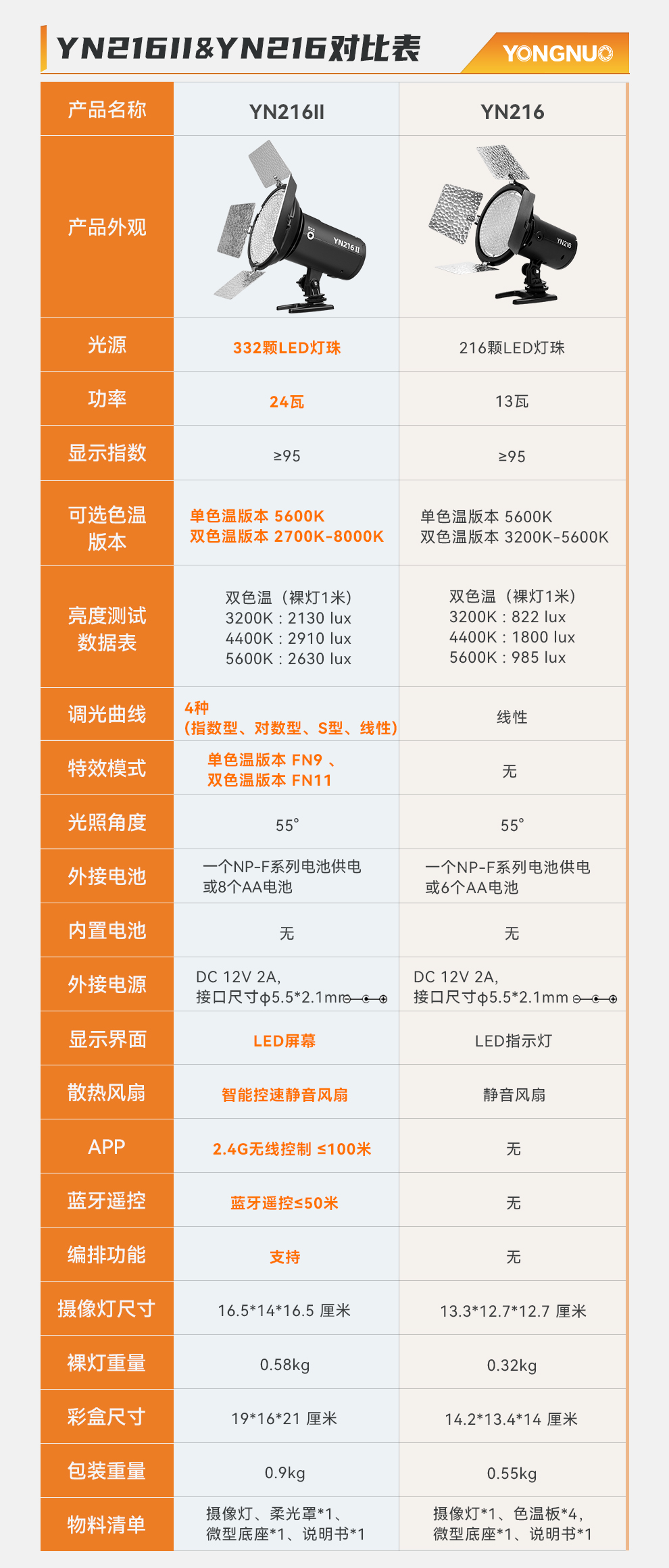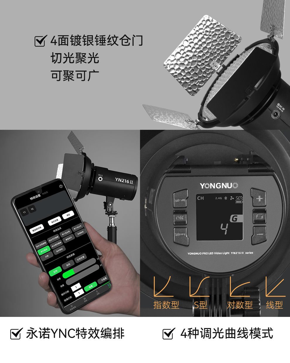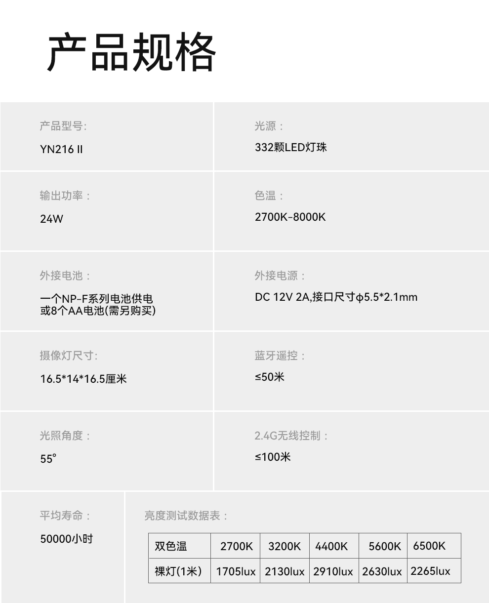 永诺 YN216 II 二代LED灯强光补光灯婚庆灯 亮度更高 光斑更均匀 寿命更长 APP控制