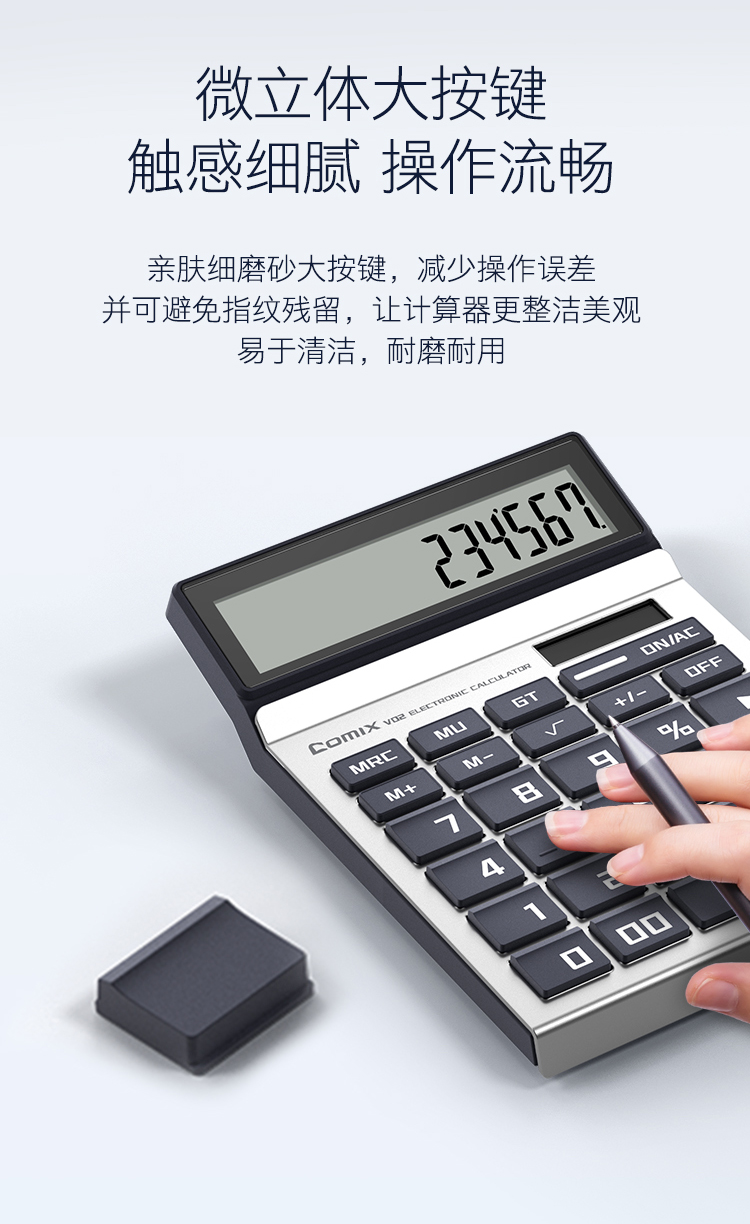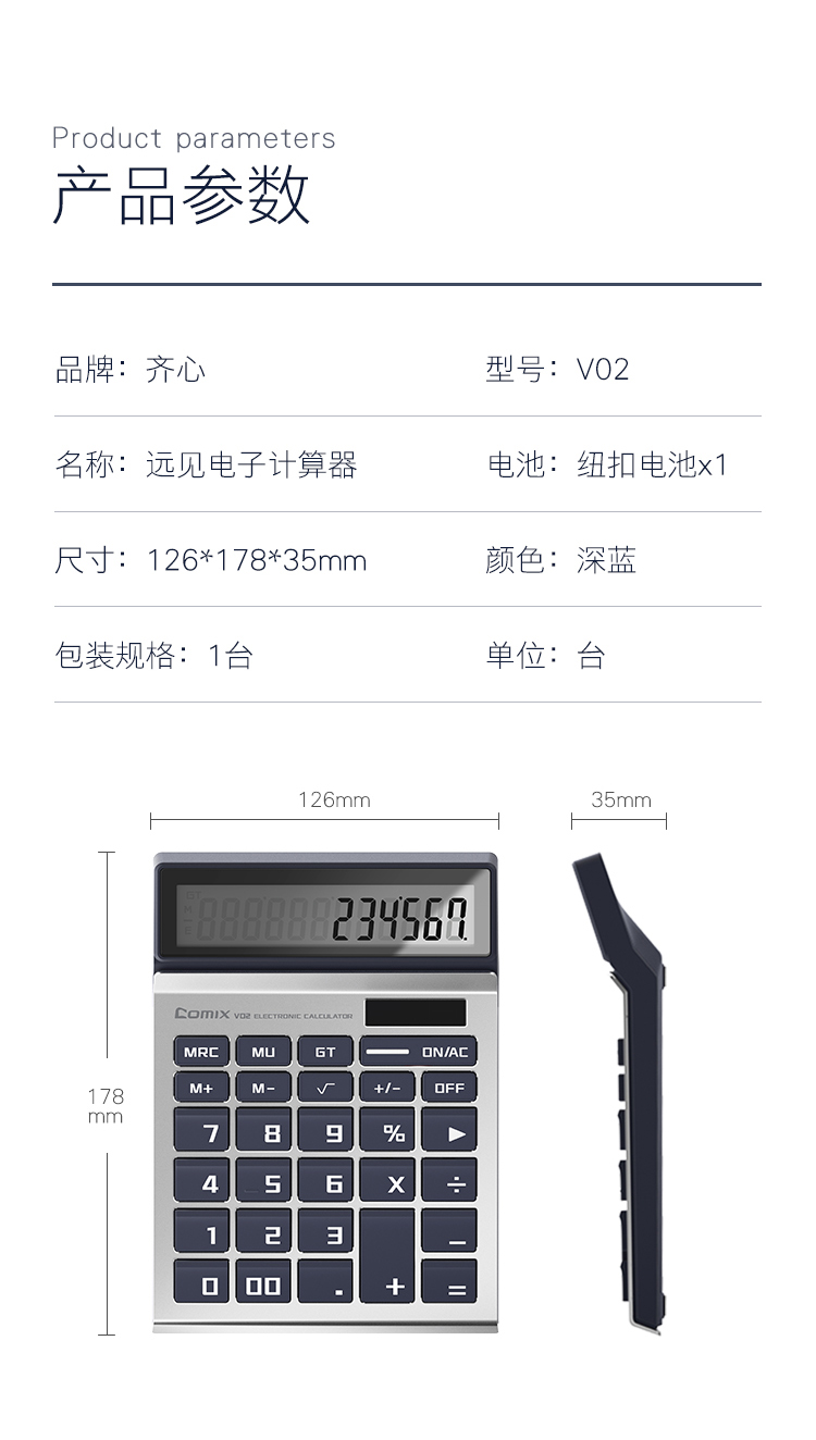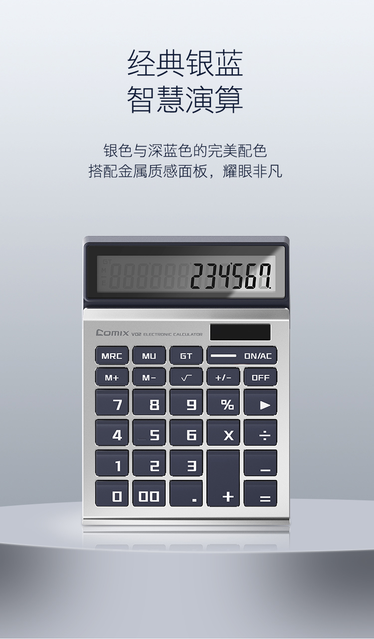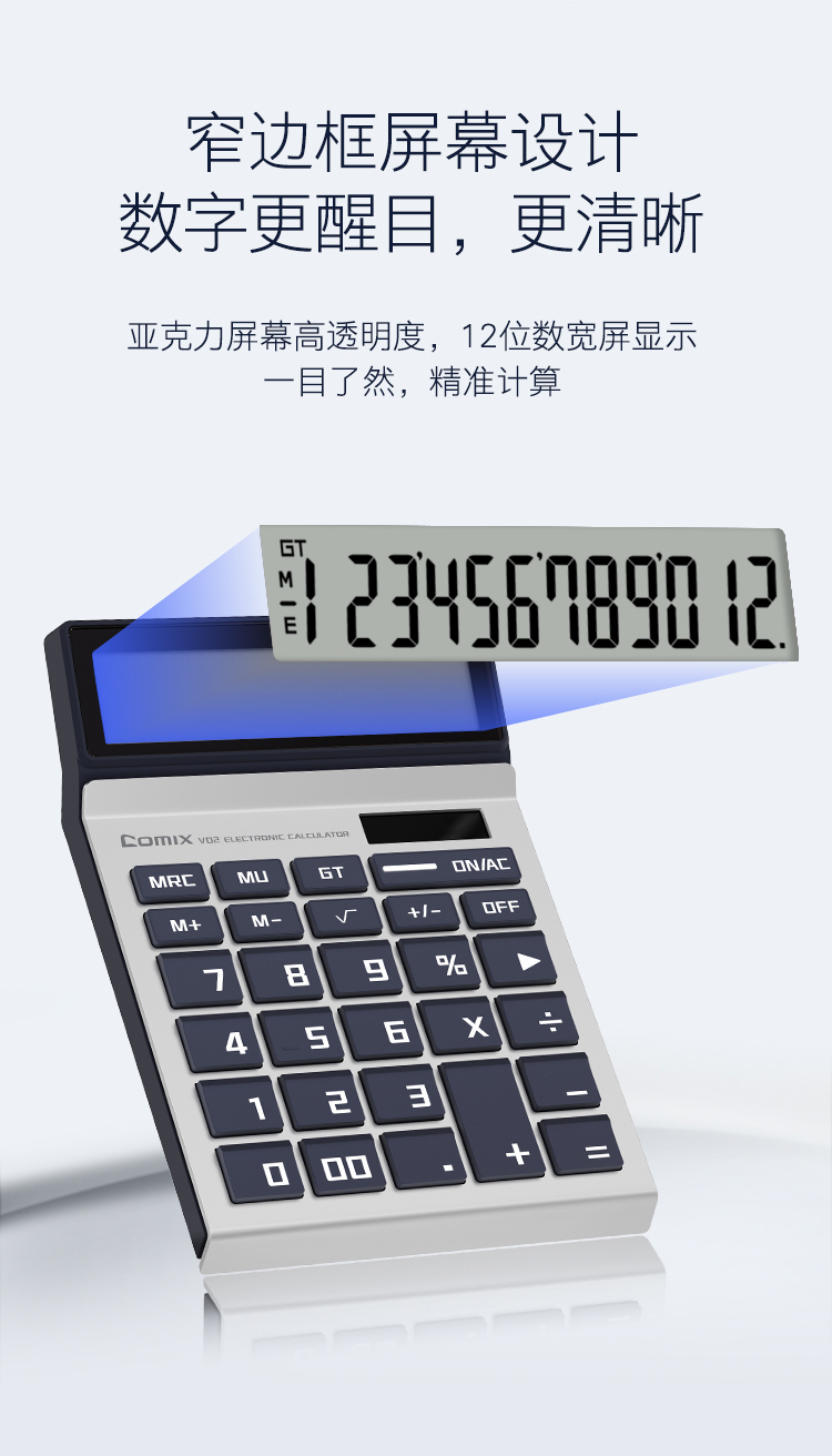 齐心 V02计算器 财务会计专用计算机算数太阳能双电源办公商务型12位大屏幕大按键记算器多功能 1个